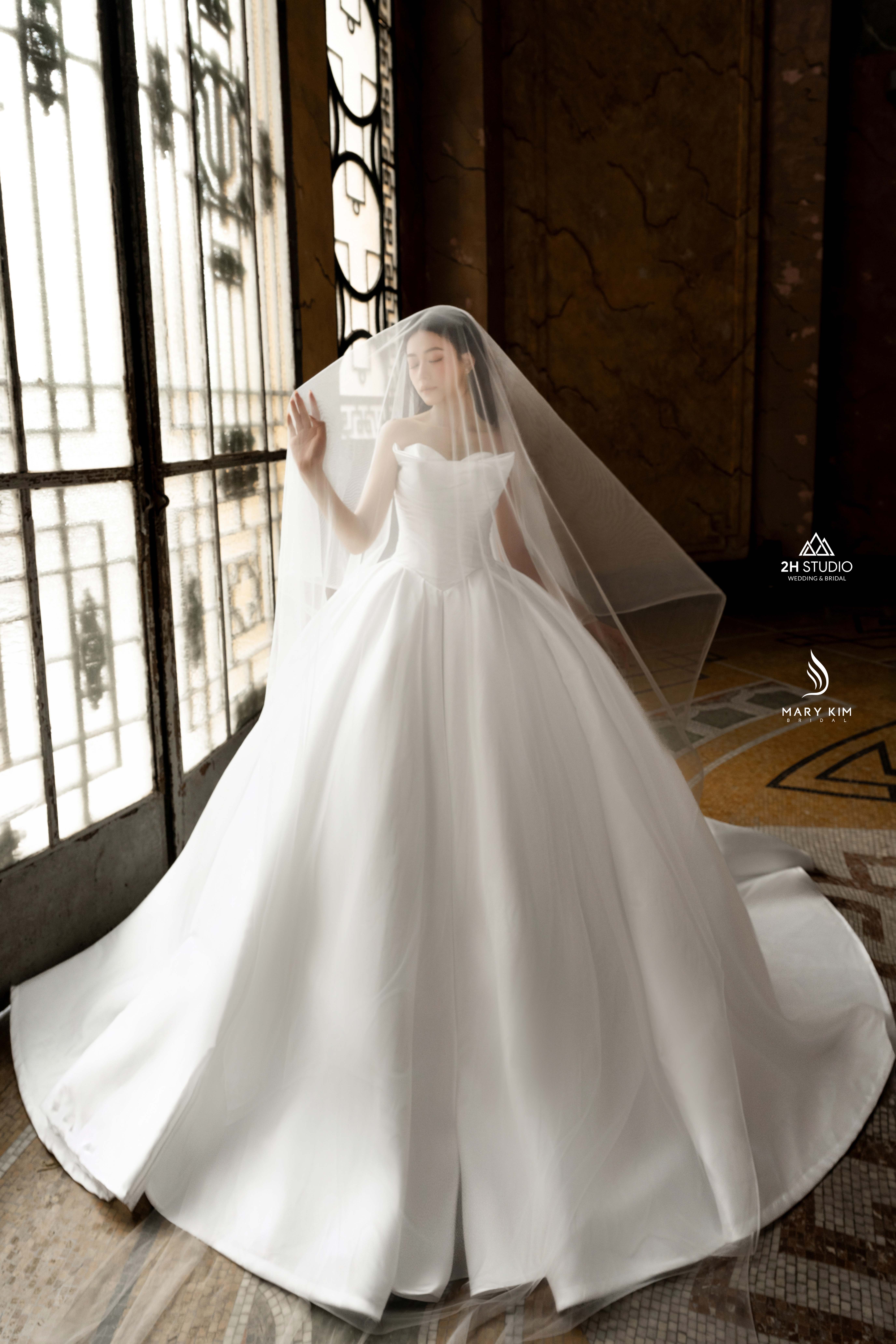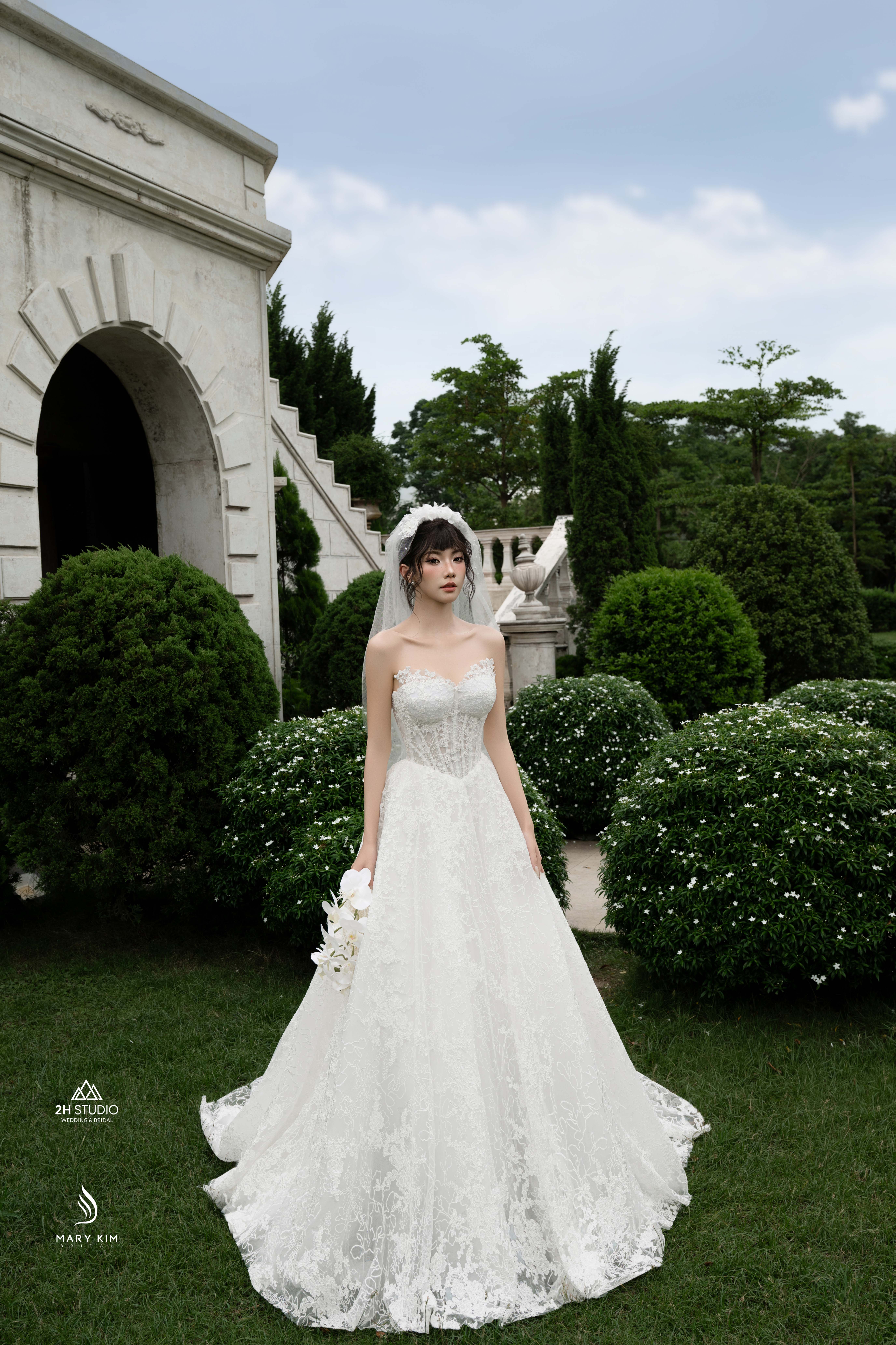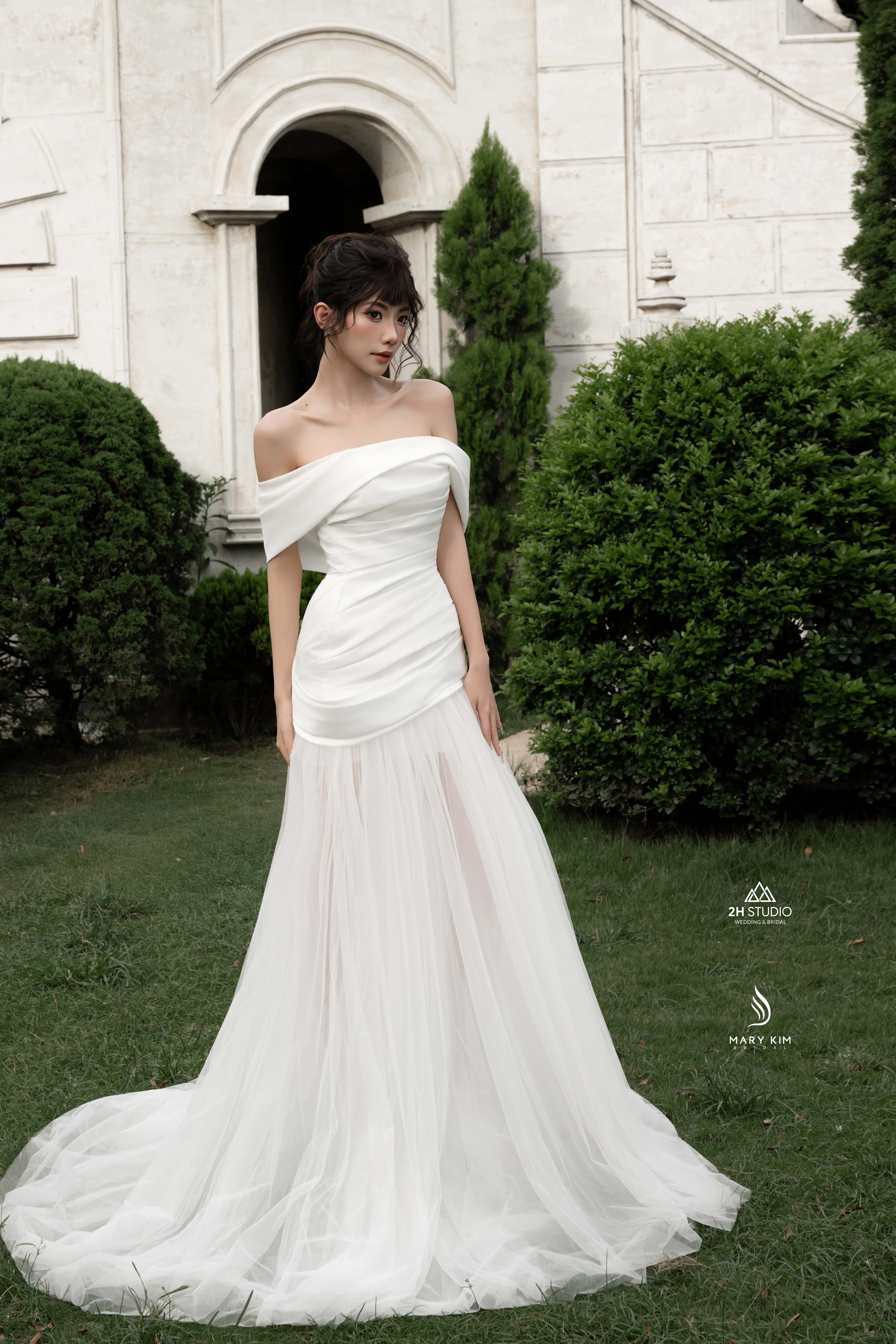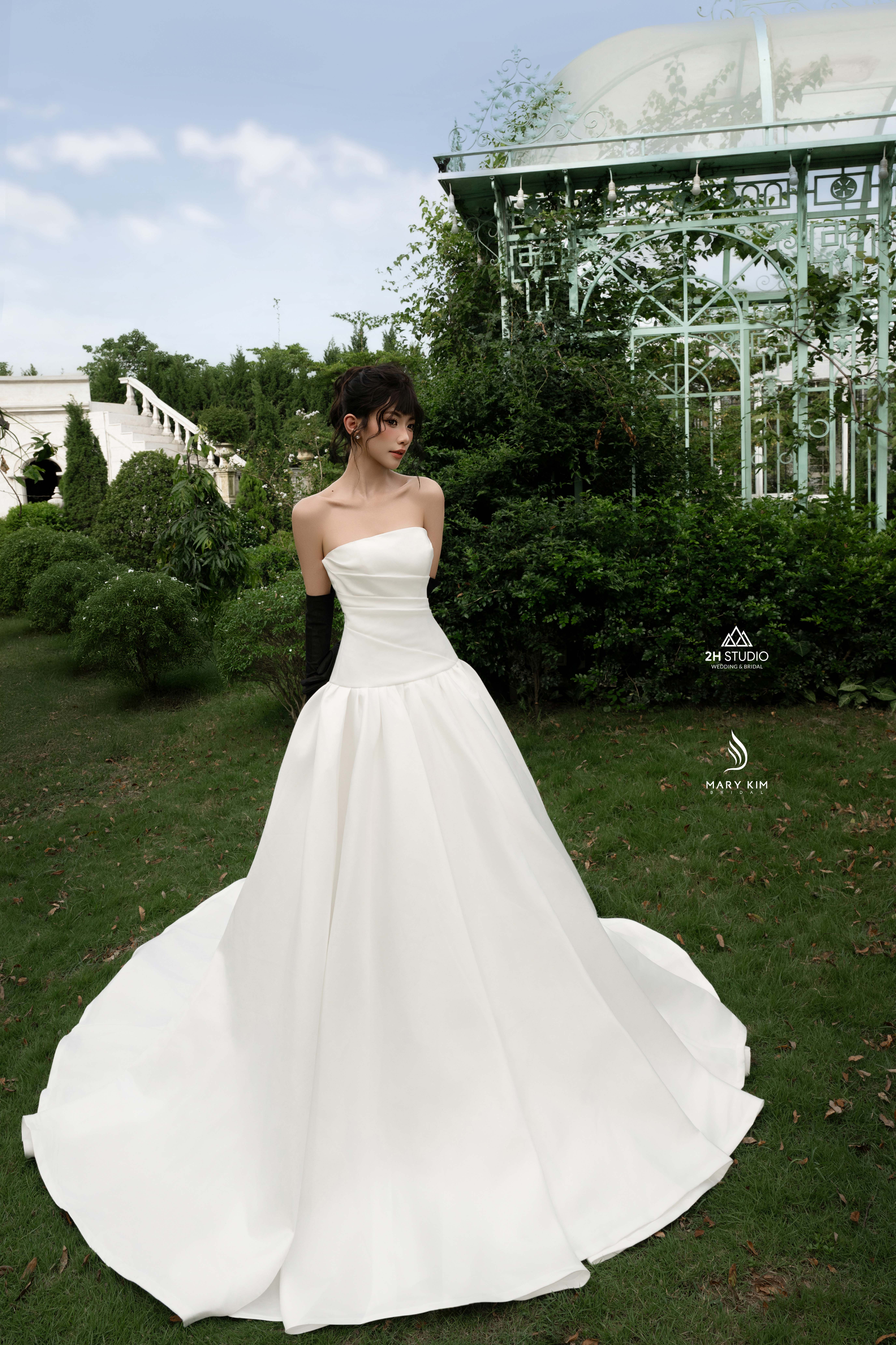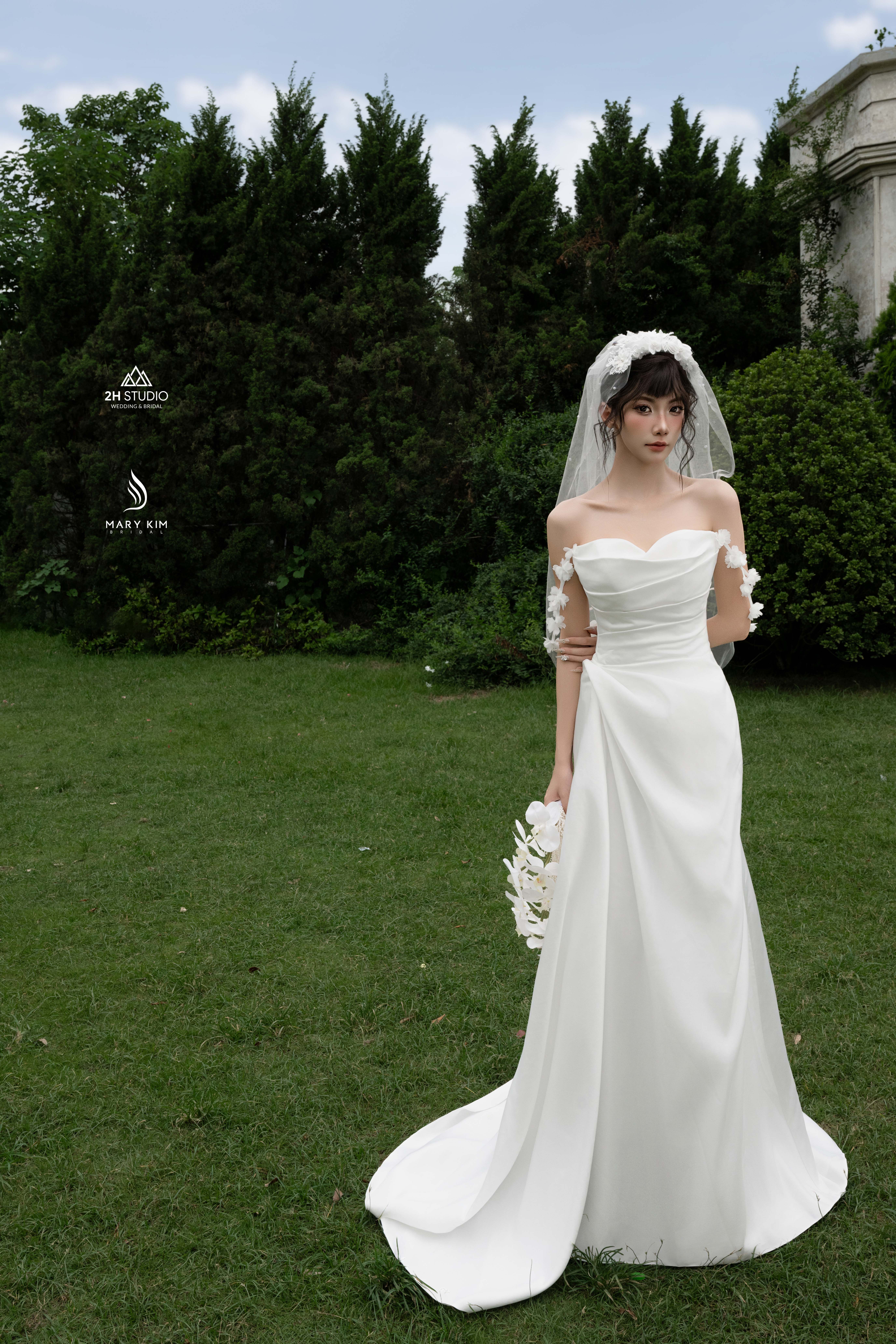 Váy cưới cổ yếm đẹp tôn lên vẻ đẹp yêu kiều, nữ tính,