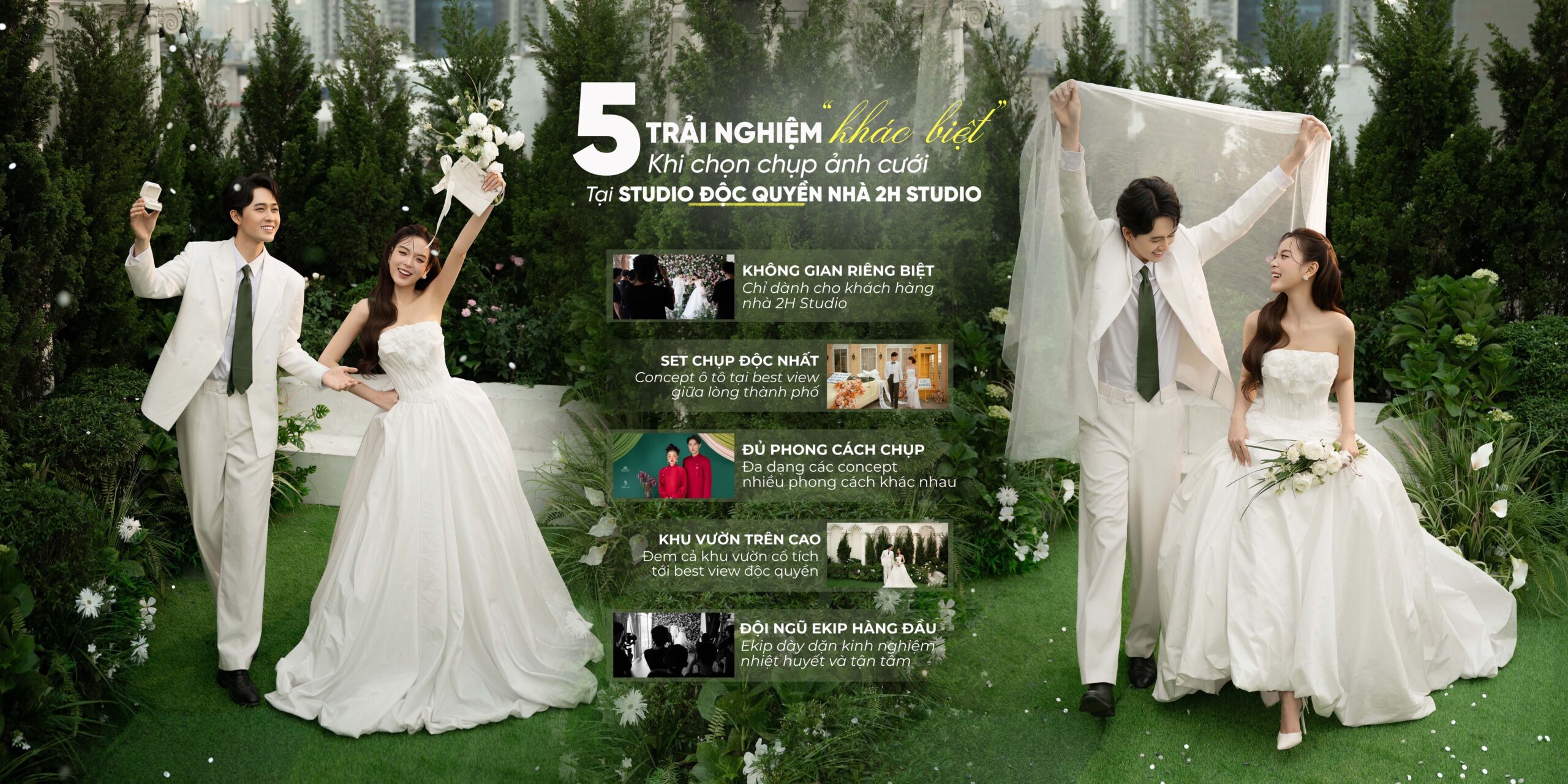 Mỗi bức ảnh cưới 2H Studio thực hiện là một câu chuyện tình yêu được kể lại. Một tác phẩm triệu đô đặc biệt và độc nhất dành cho các cặp đôi. Lưu giữ những khoảnh khắc đáng nhớ