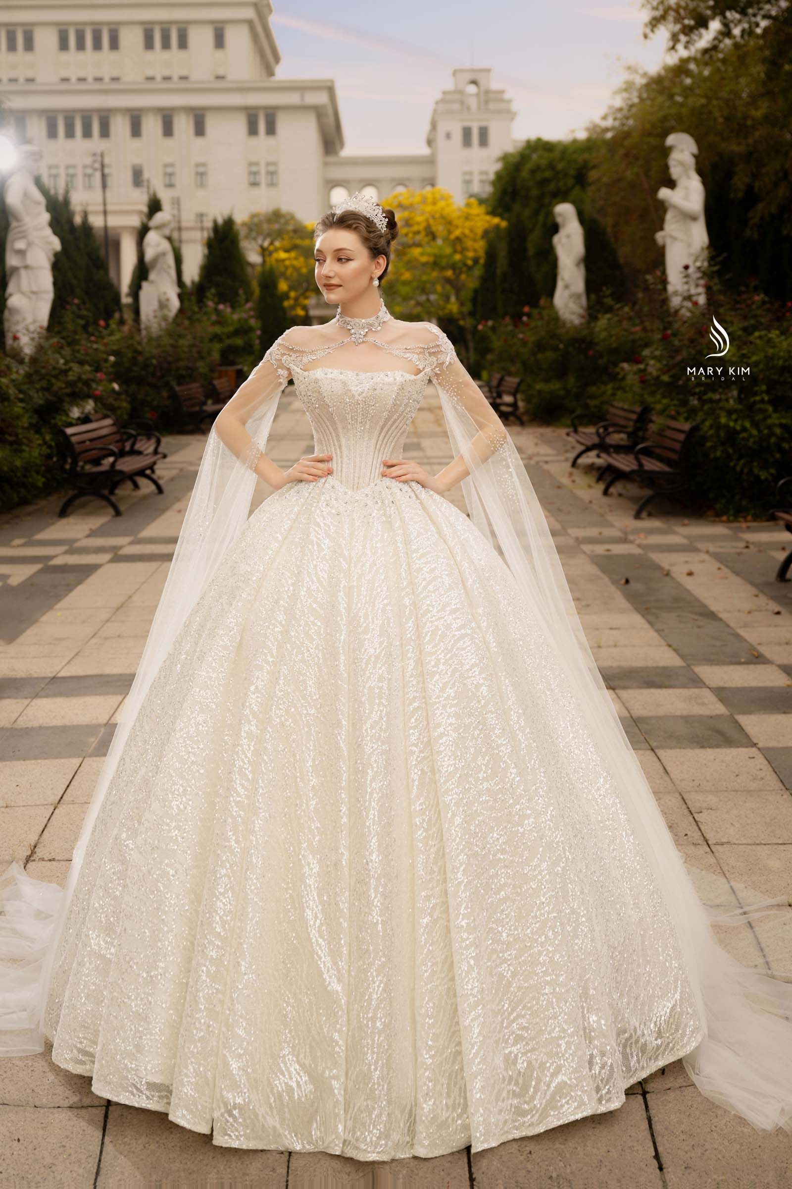 Váy cưới công chúa đính đá đẹp mắt