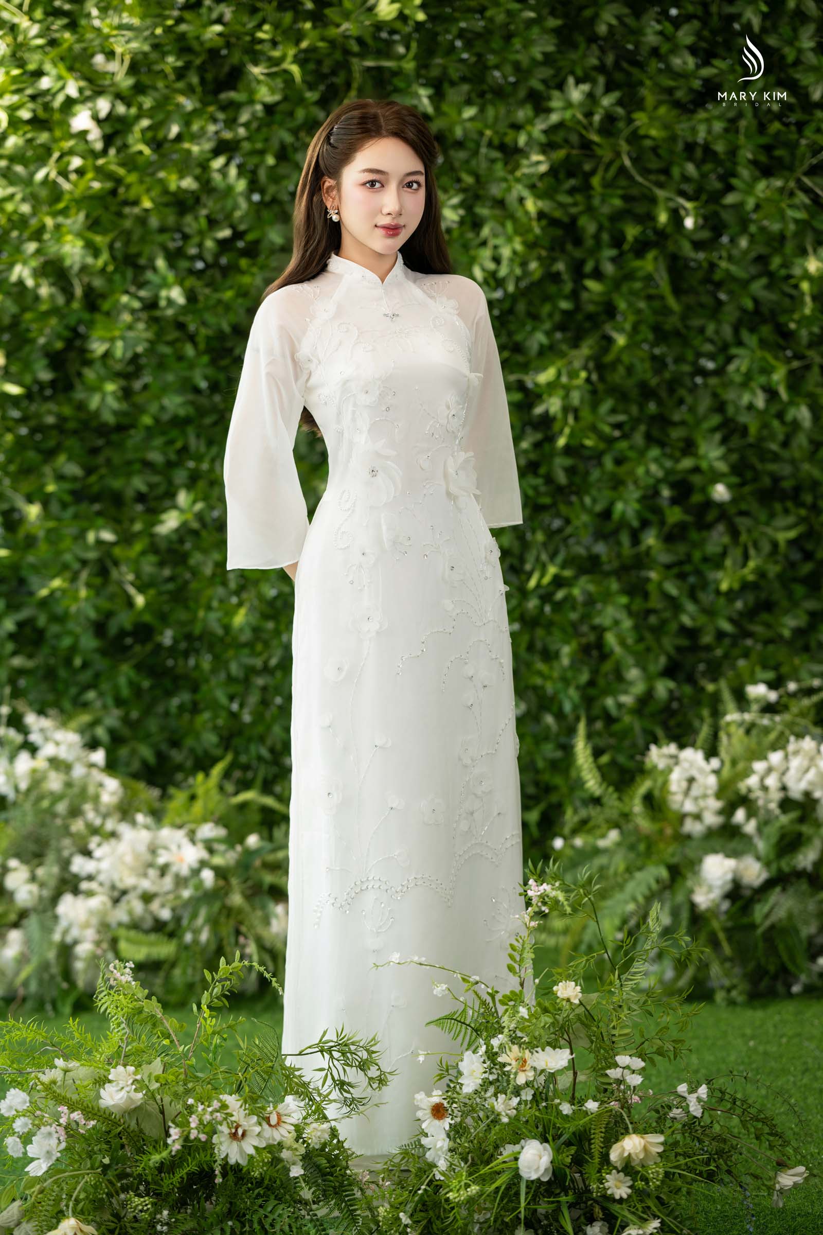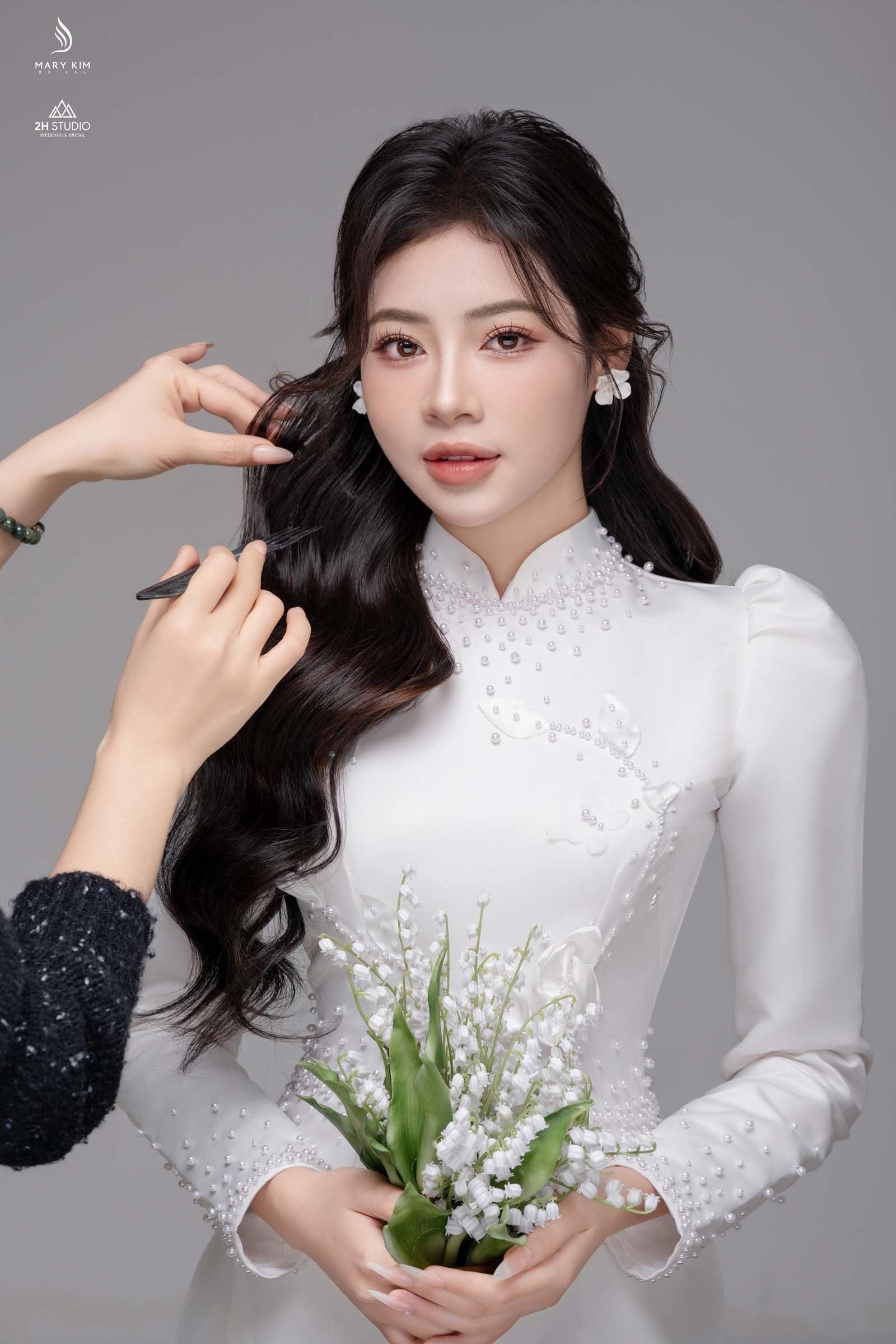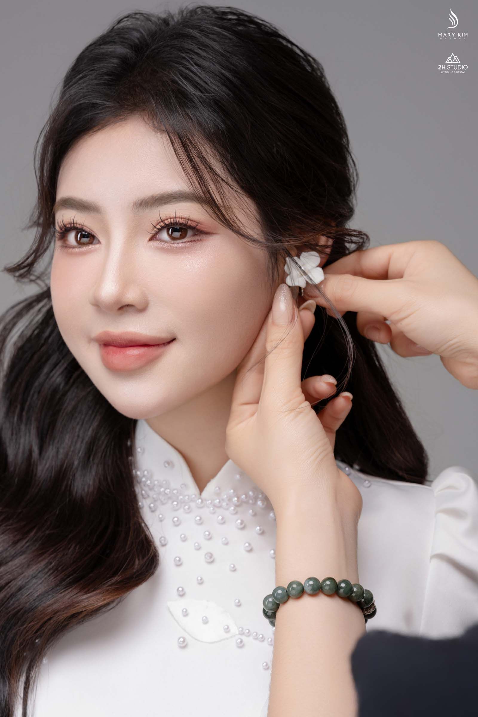 Đặc biệt, kiểu makeup ăn hỏi tự nhiên này rất “ăn ý” với áo dài truyền thống, nhất là các tông màu pastel như hồng phấn, xanh mint, trắng hoặc kem. Sự kết hợp giữa nét dịu dàng của makeup và sự tinh tế của trang phục sẽ tạo nên một tổng thể hài hòa, nền nã – đúng chuẩn một cô dâu hiện đại nhưng vẫn mang đậm nét Á Đông truyền thống.