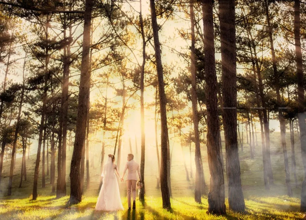• Đồi thông, rừng cây: Đà Lạt là “thiên đường” chụp ảnh cưới với đồi thông bạt ngàn, những con đường quanh co phủ sương mù.