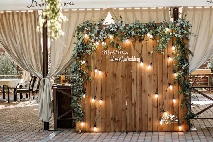 Tạo một bảng gỗ lớn với những thông điệp ý nghĩa hoặc tên của cặp đôi. Kết hợp với hoa và dây ruy băng để tạo nên một cổng cưới độc đáo.