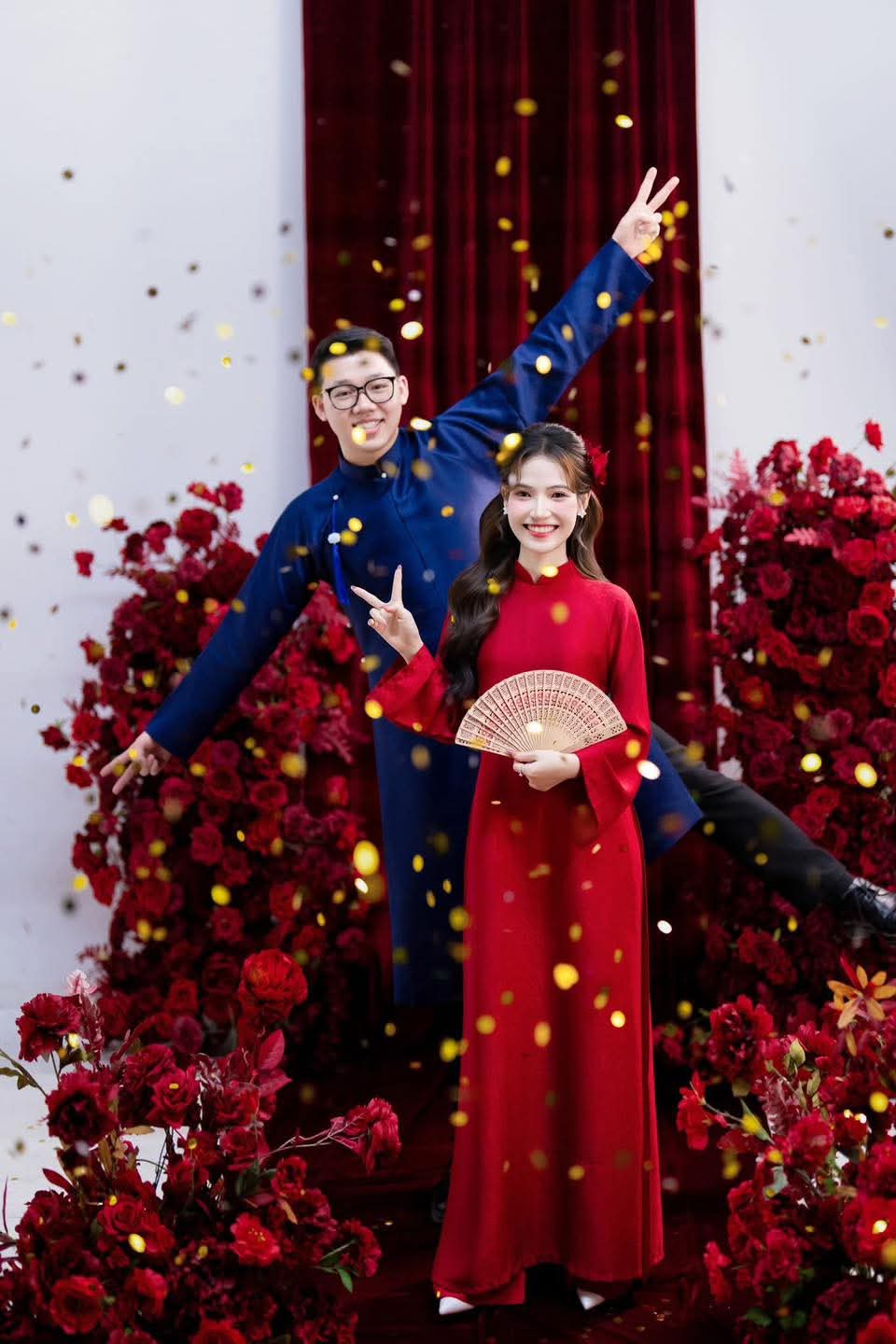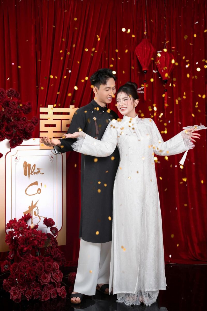 Concept ảnh cưới nền đỏ, với áo dài truyền thống