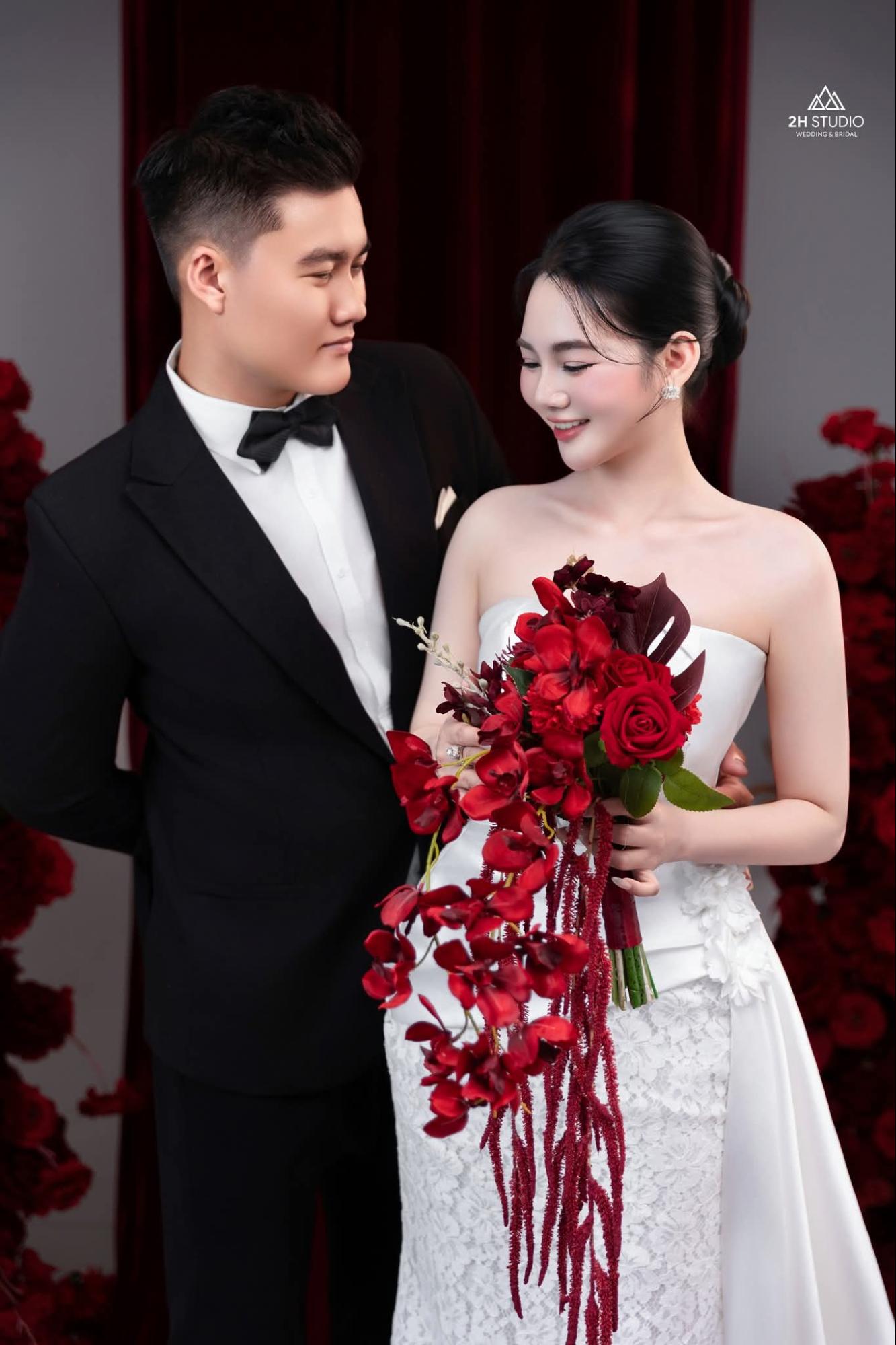 Đi kèm, những bó hoa cưới như hồng đỏ, tulip hay lan sẽ tạo điểm nhấn tinh tế, đồng điệu với trang phục, làm tăng vẻ lộng lẫy và sang trọng, mang đến diện mạo hoàn hảo cho ngày trọng đại.