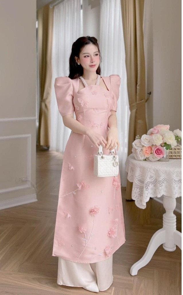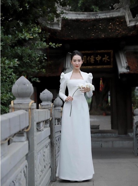 Phần tay phồng bồng bềnh là điểm nhấn nữ tính, tạo sự nổi bật và thu hút ánh nhìn. Mẫu áo này phù hợp cho các dịp lễ hội, sự kiện quan trọng, giúp tôn lên vẻ duyên dáng và mềm mại của người mặc chiếc áo dài tay phồng cổ vuông.