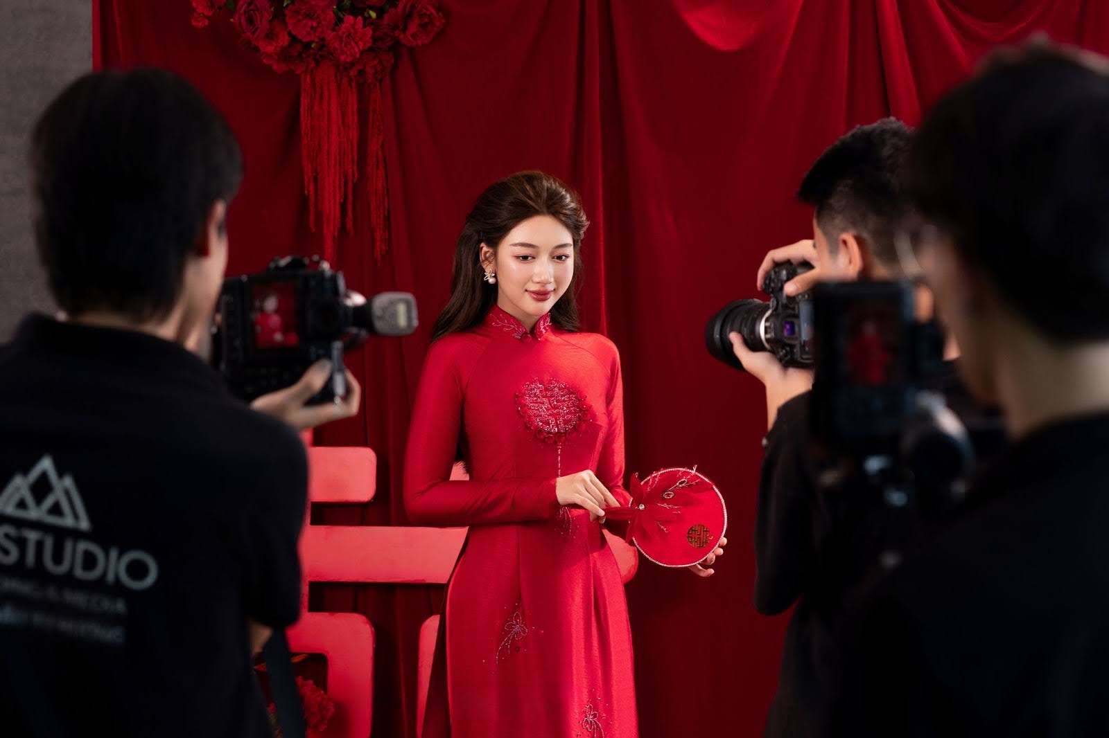 Thiết kế trang phục cưới chưa bao giờ lỗi thời là mẫu áo dài 4 tà màu đỏ. Màu đỏ tượng trưng cho sự may mắn, tình yêu và hạnh phúc ngập tràng, luôn son sắc. Vì vậy. đây là tone màu hoàn hảo, cực kỳ phù hợp cho ngày cưới.