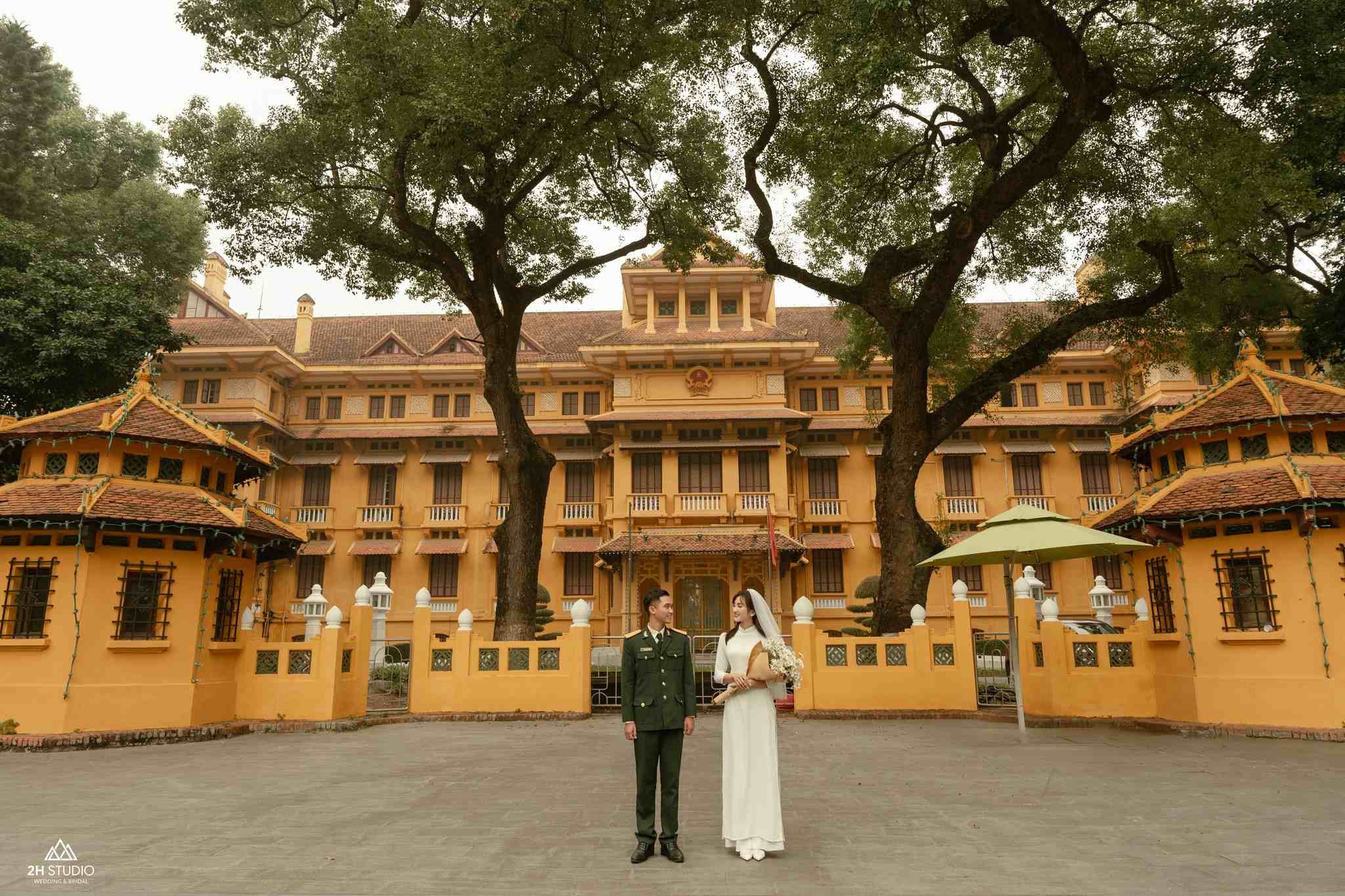 Phố Cổ Hà Nội là một trong những địa điểm chụp ảnh cưới công an được nhiều cặp đôi lựa chọn nhờ vẻ đẹp cổ kính, hoài niệm, mang đậm dấu ấn lịch sử và văn hóa Thủ đô. Những con phố nhỏ, mái ngói rêu phong, những bức tường vàng đậm chất xưa sẽ tạo nên một bộ ảnh cưới vừa lãng mạn, vừa trang trọng