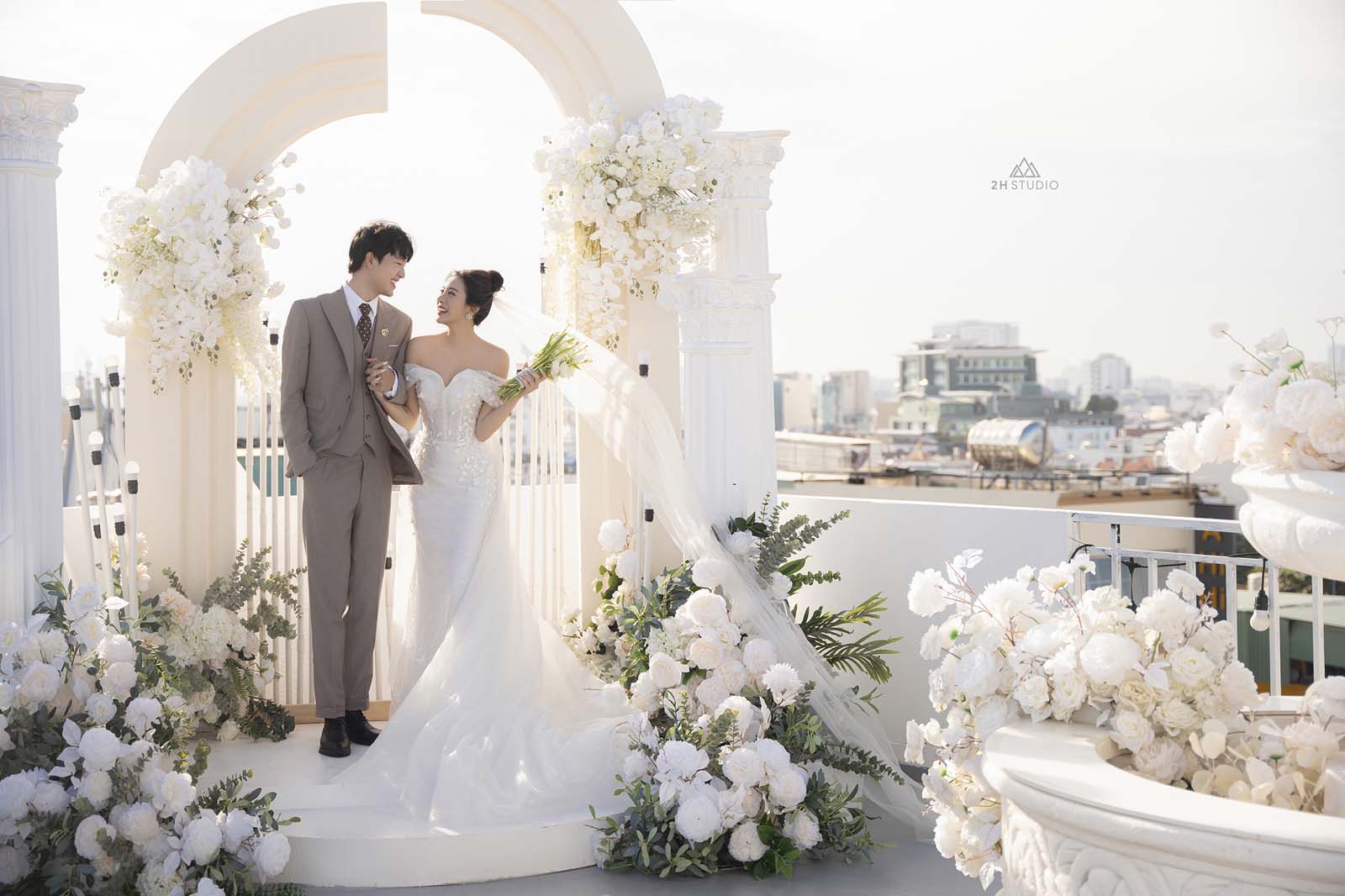 Ngoài ra, chi phí chụp ảnh cưới cũng phụ thuộc vào cô dâu chú rể quyết định chụp tại studio hay chụp ngoại cảnh. Nếu bạn chụp ảnh cưới tại 2H STUDIO Sài Gòn với bối cảnh dựng sẵn, ít chỉnh sửa, bao gồm váy cưới và trang điểm có chi phí khoảng 8.500.000 VND. Nếu chụp ngoại tại hai địa điểm trong Sài Gòn có giá 10.500.000 VND và giá có thể cao hơn khi chụp ở ngoại thành.