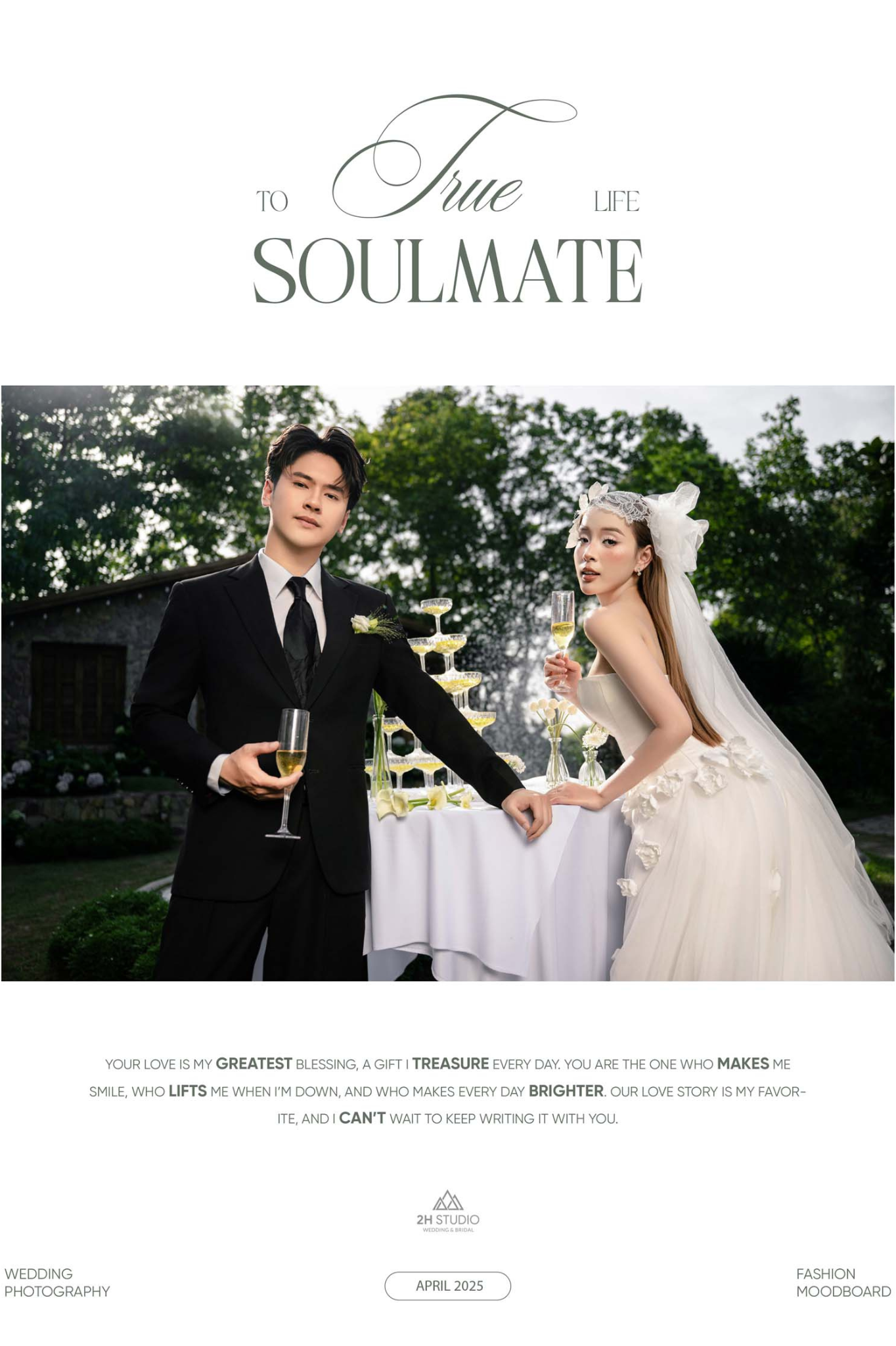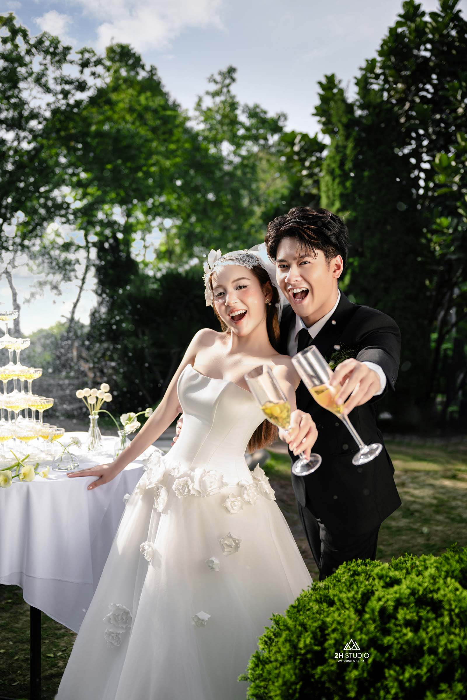 Không chỉ đơn thuần là chụp ảnh, 2H STUDIO còn hỗ trợ tư vấn concept, trang phục và phong cách tạo dáng phù hợp với từng cặp đôi. Từ váy cưới, vest chú rể đến layout hình ảnh đều được phối hợp hài hòa để giúp bộ chụp ảnh cưới bàn tiệc trở nên hoàn hảo và mang dấu ấn riêng.