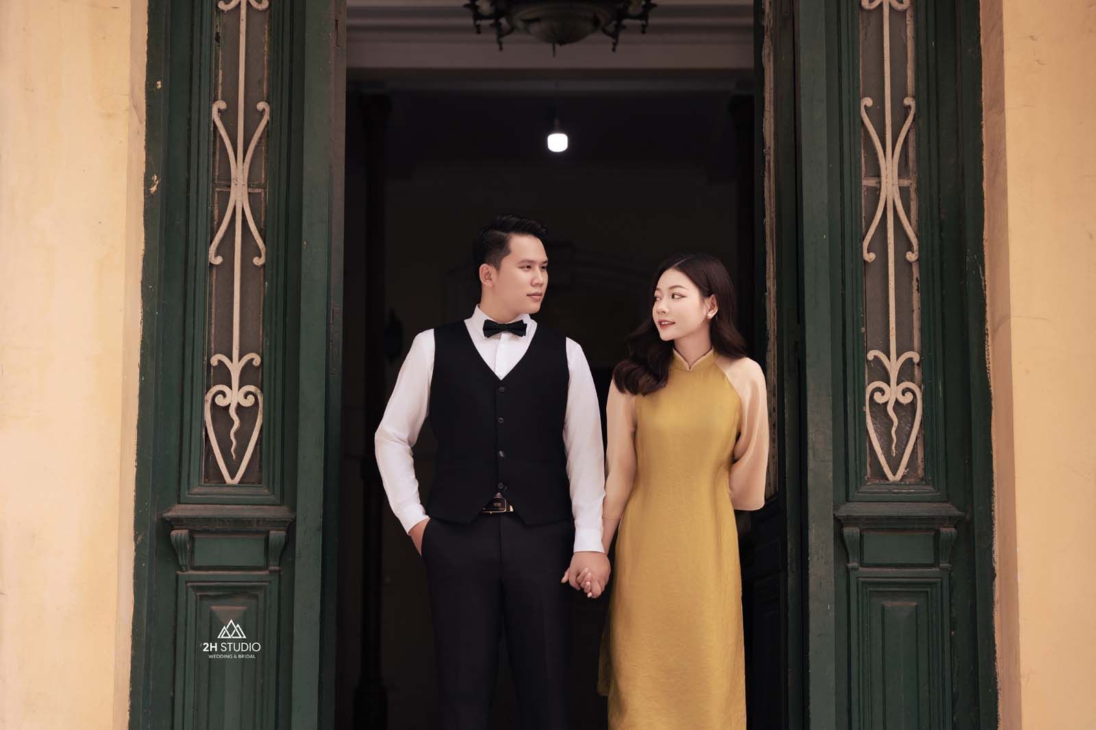 Nếu cặp đôi yêu thích vẻ đẹp cổ điển và muốn có những bức ảnh cưới mang đậm dấu ấn thời gian, những địa điểm như bức tường xưa cũ, cửa sổ gỗ hay đường phố với những viên gạch cũ kỹ sẽ tạo nên bối cảnh lãng mạn và đầy chất nghệ thuật, làm nổi bật vẻ đẹp của áo dài cưới truyền thống.