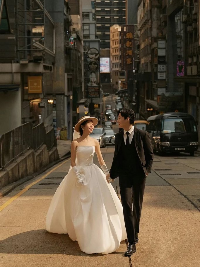 Lấy cảm hứng từ những bộ phim cổ điển của Hồng Kông, đặc biệt là các bộ phim lãng mạn hoặc hành động, bạn có thể chụp những bức ảnh theo phong cách điện ảnh với những bộ đồ cưới cổ điển, ánh sáng mờ ảo, góc chụp đậm chất điện ảnh. Địa điểm lý tưởng cho concept này có thể là các khu phố cổ, các tòa nhà cao tầng, hoặc các khu vực có ánh đèn neon rực rỡ.