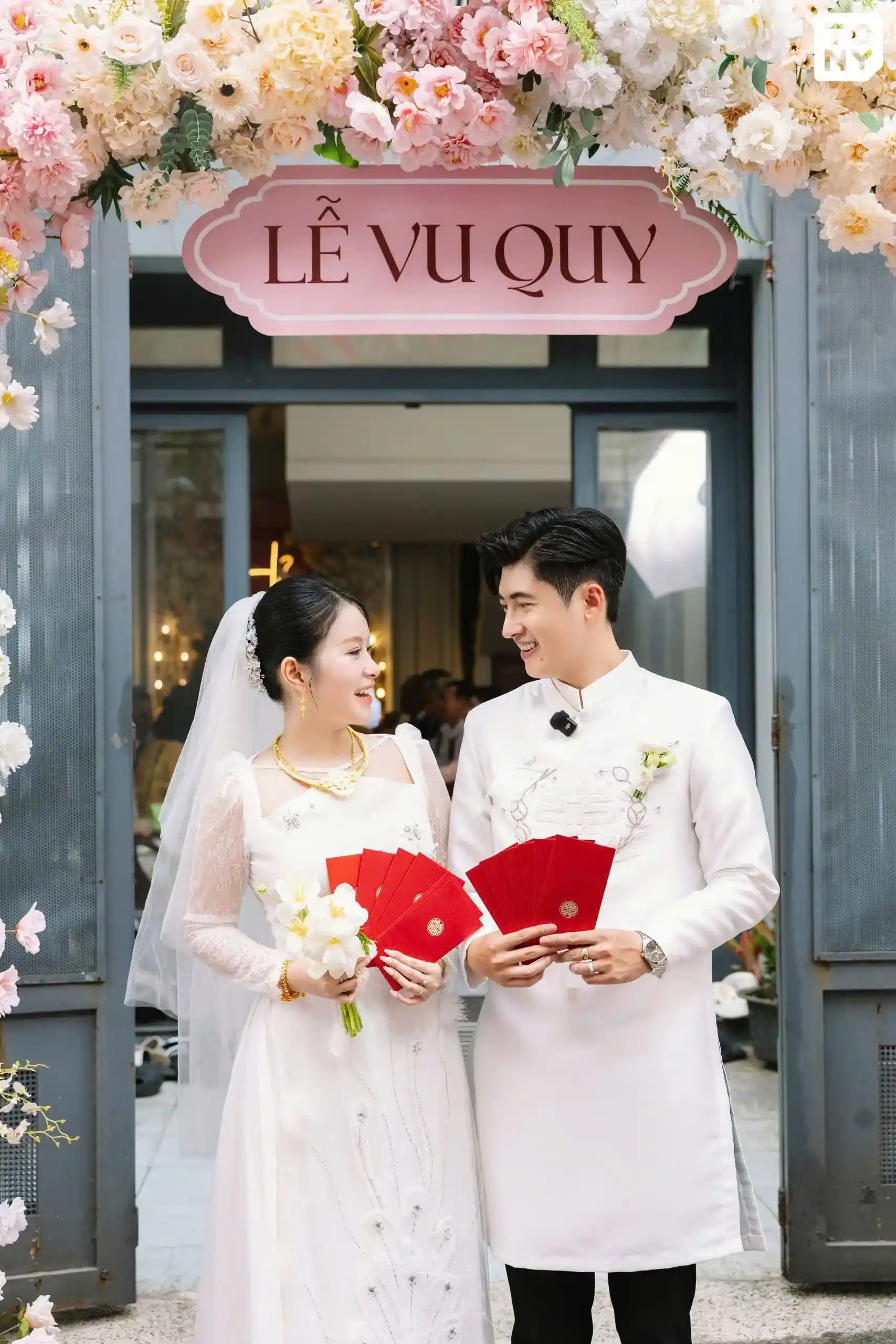 Cô dâu nhận bó hoa đó rồi đặt xuống. Ngay sau đó, chú rể bước vào, trao bó hoa cưới chính thức và cùng cô dâu ra làm lễ gia tiên như thường lệ.Thủ tục cưới lấy ngày
