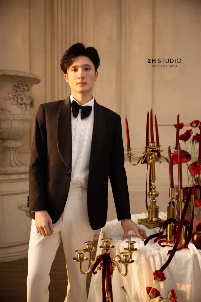 • Đa dạng phong cách: Từ Tuxedo cổ điển đến những bộ Suit hiện đại, việc thuê áo vest chú rể cho phép bạn linh hoạt thay đổi theo concept đám cưới.
