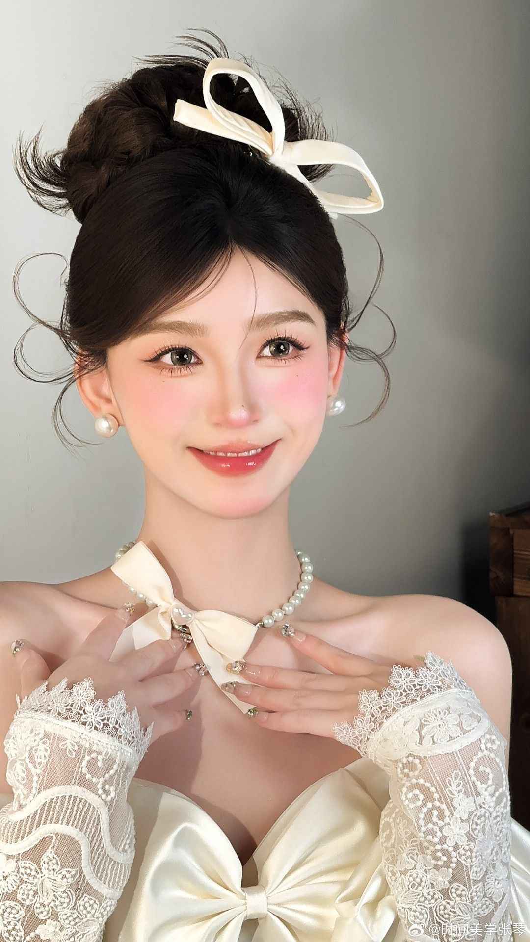 Kiểu tóc này có thể kết hợp linh hoạt với nhiều phụ kiện cưới tinh tế như vương miện nhỏ, kẹp ngọc trai hay vòng hoa đội đầu, tạo nên vẻ ngoài nổi bật mà vẫn giữ được sự trang nhã
