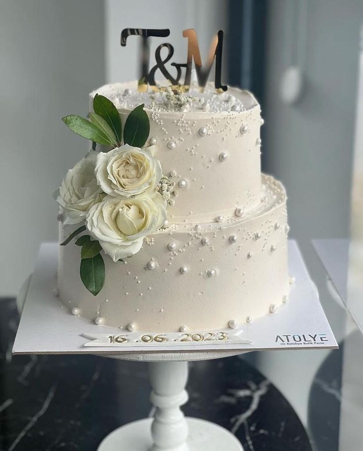 Bánh cưới 2 tầng đẹp là lựa chọn phổ biến nhất hiện nay nhờ sự cân đối và tính thẩm mỹ cao. Với kích thước vừa phải, mẫu bánh này đủ để gây ấn tượng mà không quá cầu kỳ. Tầng dưới thường có kích thước lớn để tạo sự vững chắc, tầng trên nhỏ hơn để cân đối tổng thể.