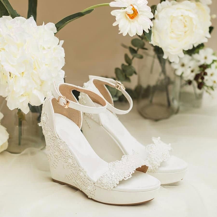 Giày cưới platform là kiểu giày có phần đế và mũi được độn cao, giúp tạo sự cân bằng khi di chuyển. Mẫu giày này không chỉ tôn dáng mà còn là lựa chọn lý tưởng cho các cô dâu muốn “ăn gian” chiều cao một cách khéo léo.