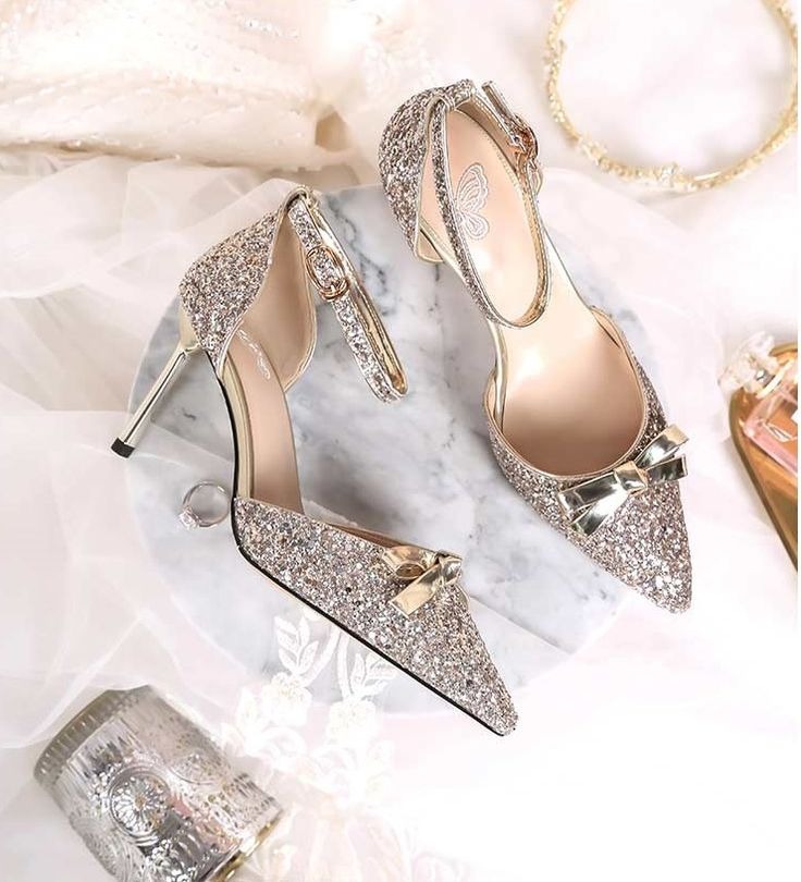 Giày cao gót ánh kim giúp tôn lên vẻ đẹp rạng rỡ, kiêu sa cho cô dâu nhờ hiệu ứng lấp lánh đầy cuốn hút. Đây là kiểu giày thường xuyên xuất hiện trong các buổi tiệc cưới mang phong cách sang trọng, giúp cô dâu – nhân vật chính của buổi lễ – trở nên nổi bật và thu hút mọi ánh nhìn.