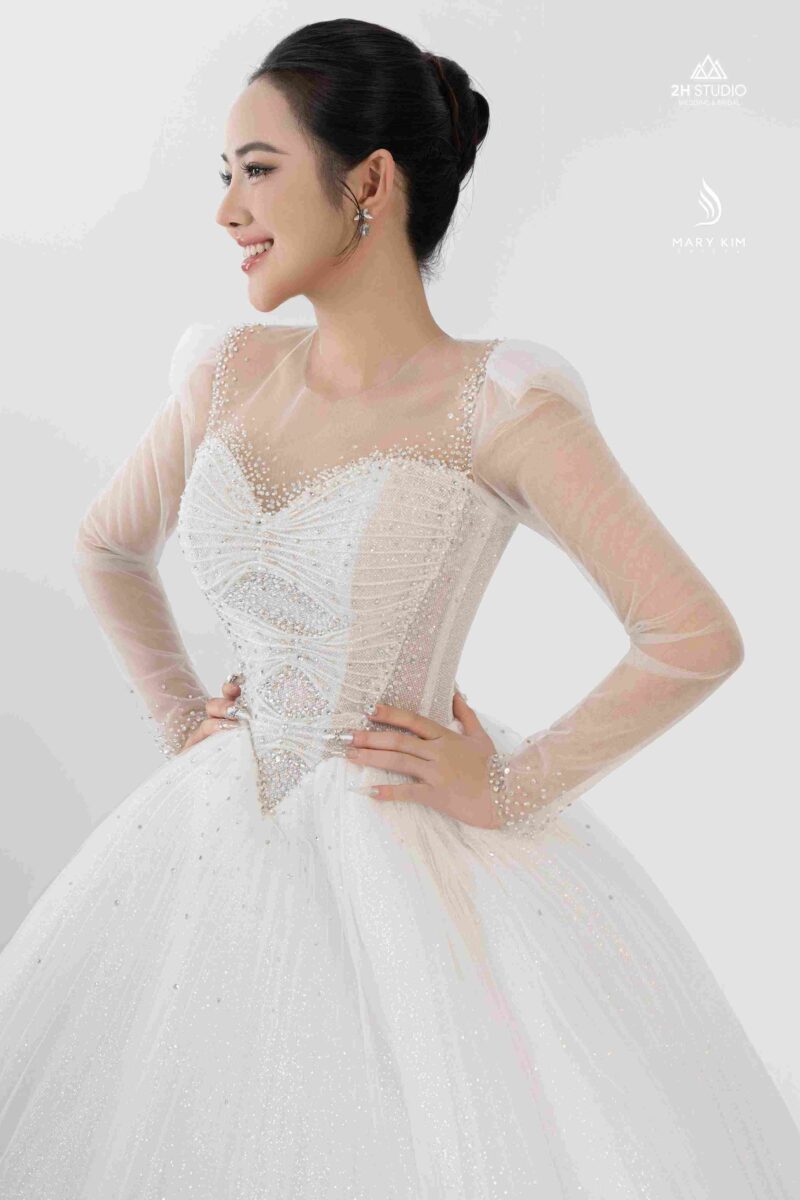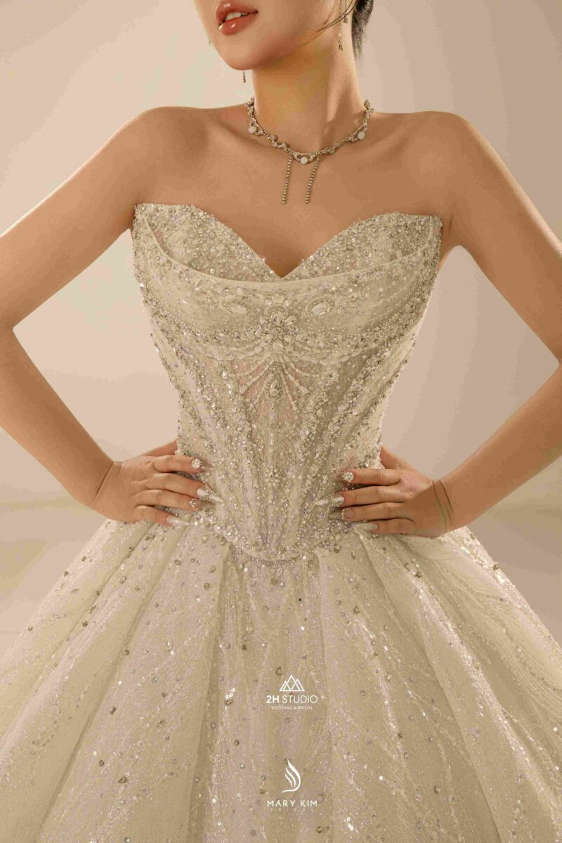 Ngày cưới là khoảnh khắc thiêng liêng và đáng nhớ trong cuộc đời mỗi người phụ nữ. Để tôn vinh vẻ đẹp và cá tính riêng, việc lựa chọn một chiếc váy cưới phù hợp là điều vô cùng quan trọng. Trong đó, váy cưới đính đá, đặc biệt là váy đính kim cương đang trở thành xu hướng được nhiều cô dâu yêu thích. Với khả năng tỏa sáng dưới ánh đèn, những thiết kế tại 2H Studio không chỉ mang lại vẻ đẹp lộng lẫy mà còn thể hiện đẳng cấp và phong cách riêng biệt.