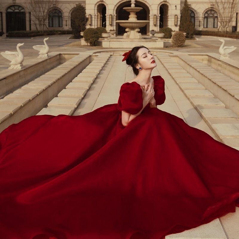 Váy cưới xòe bồng màu đỏ