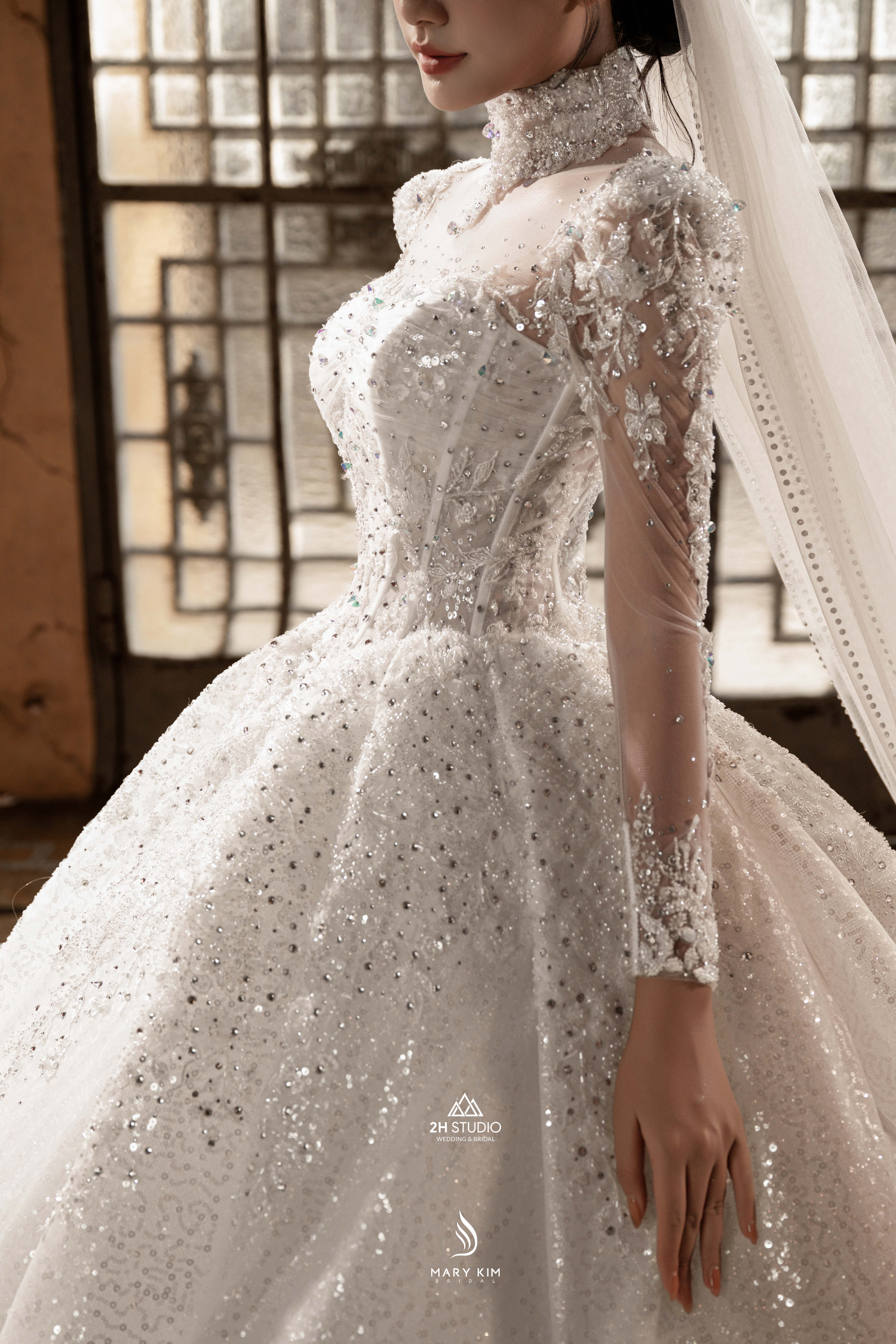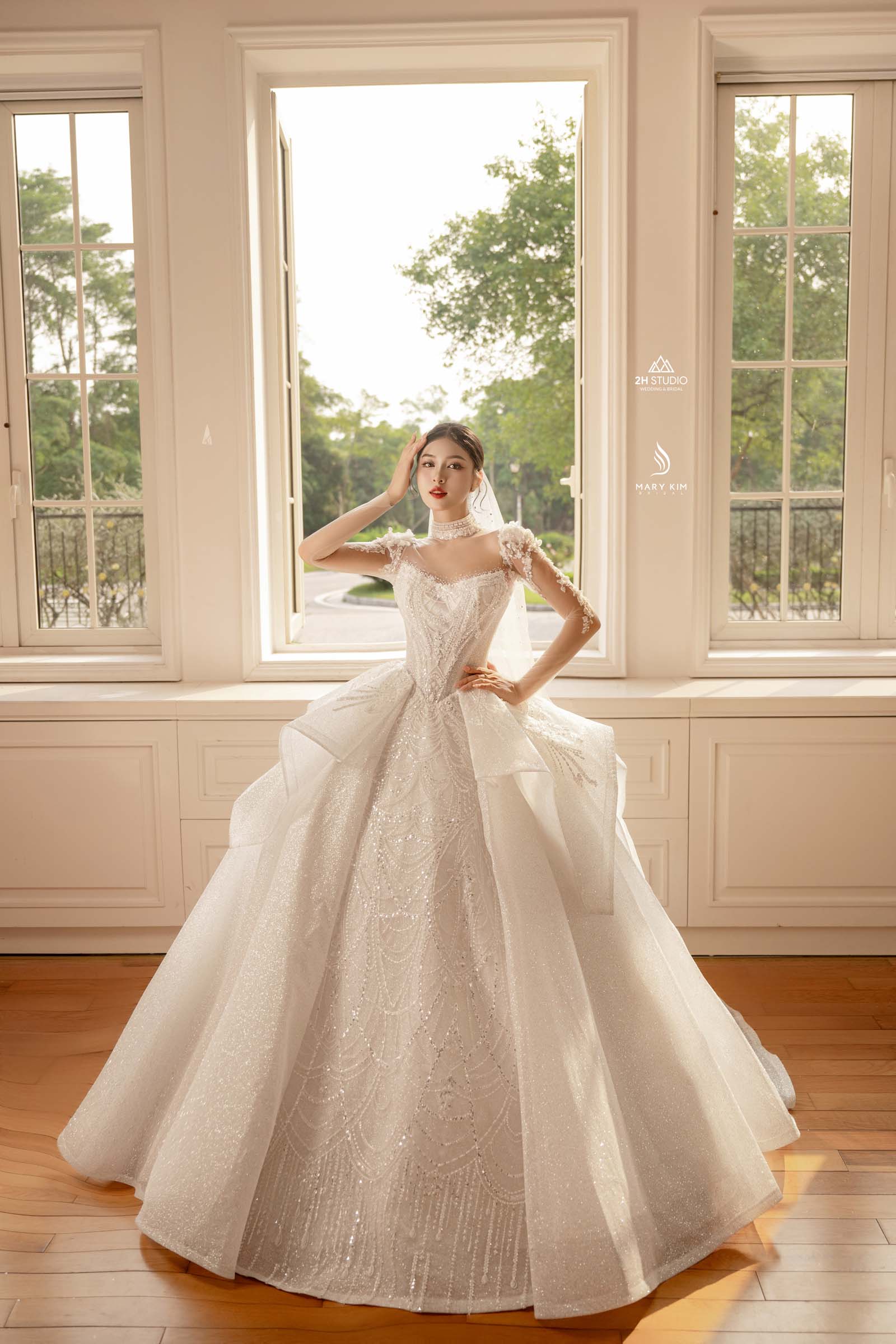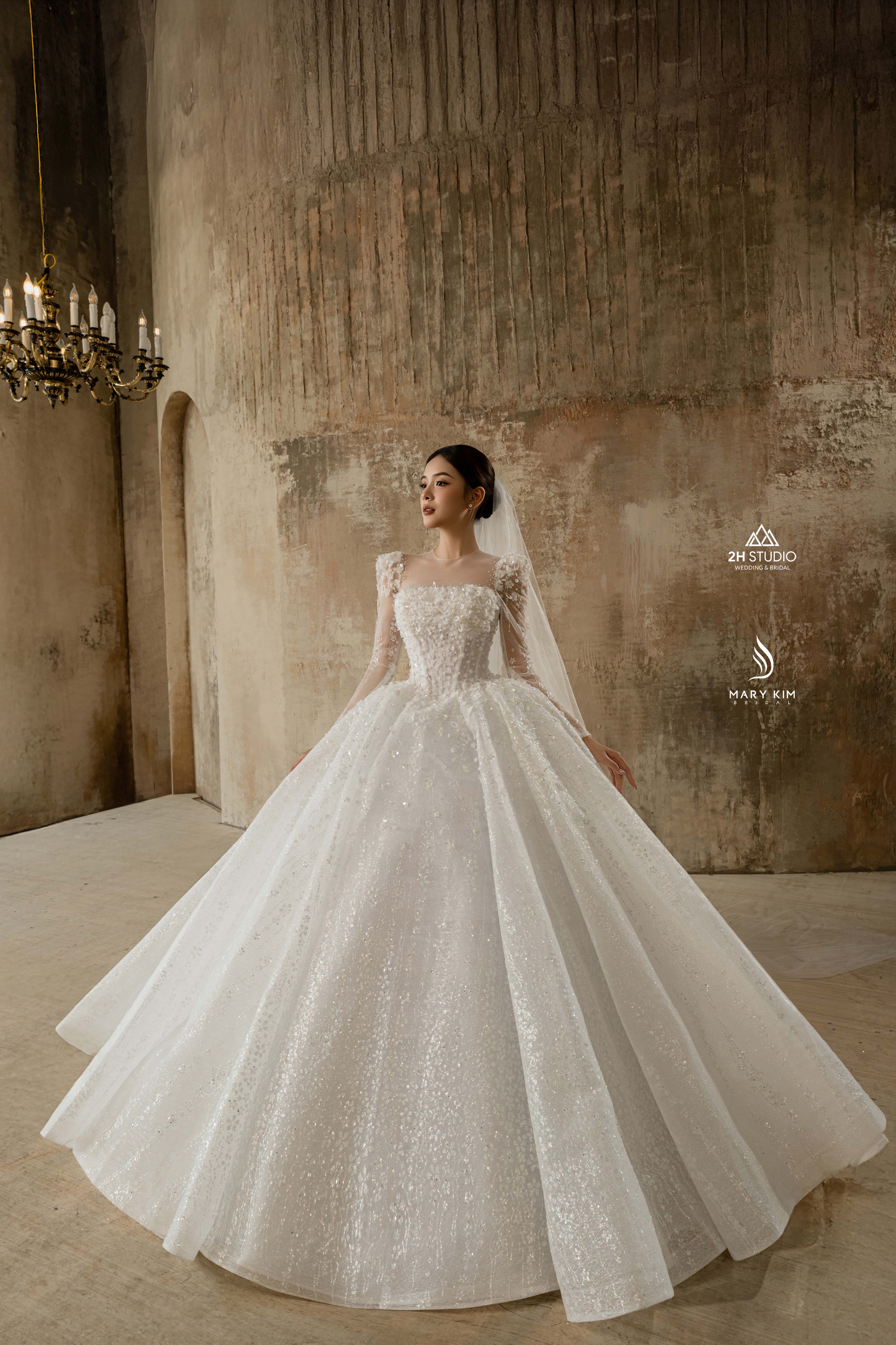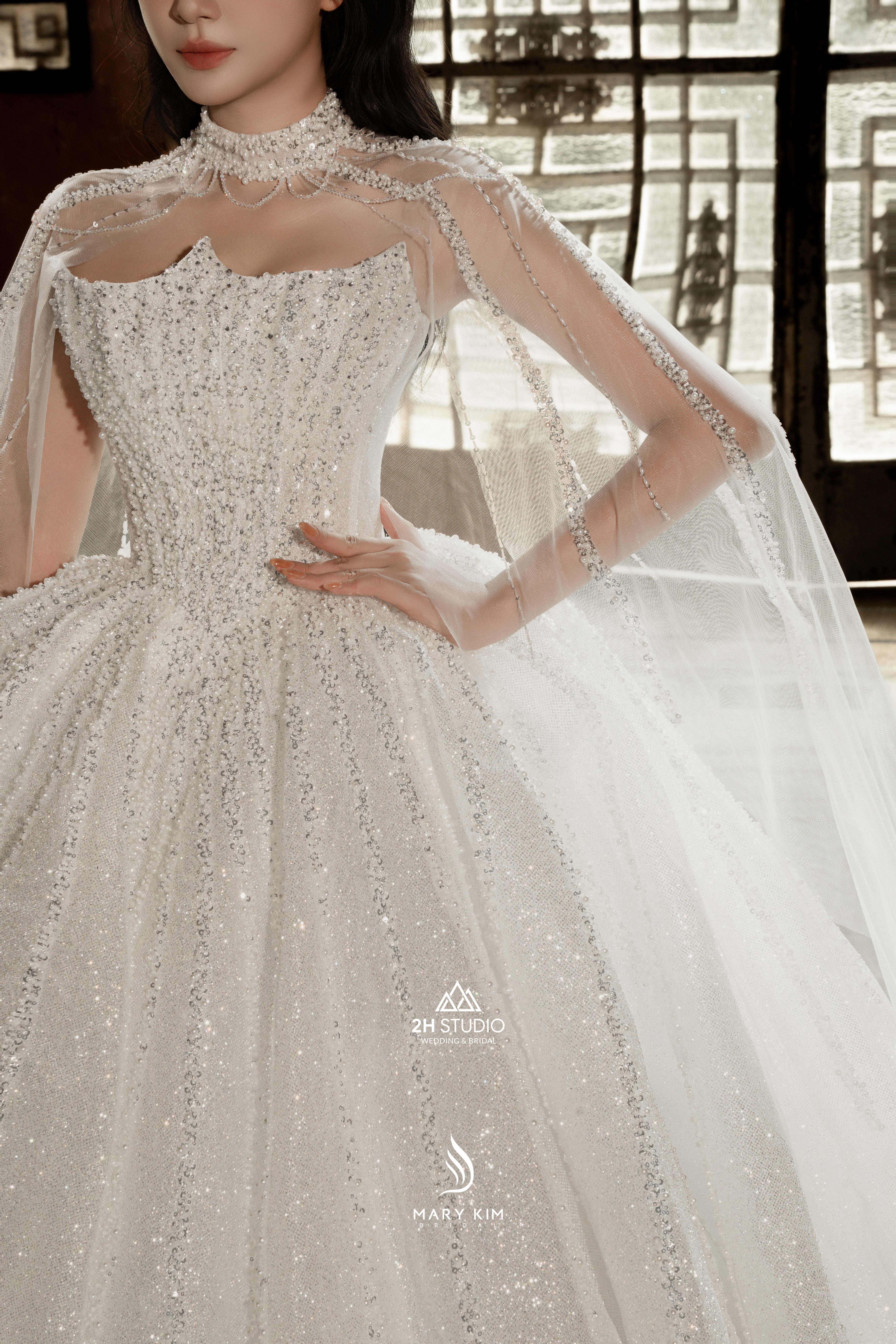 Là thương hiệu váy cưới cao cấp được nhiều cô dâu tin chọn, thương hiệu Mary Kim của 2H STUDIO luôn tiên phong trong việc mang đến những thiết kế váy cưới mùa đông vừa ấm áp, vừa tôn lên vẻ đẹp thanh lịch và kiêu sa. Mỗi chiếc váy tại đây đều được thiết kế độc quyền, chú trọng từng đường cắt, chất liệu và phom dáng để phù hợp với khí hậu se lạnh mà vẫn giữ trọn nét tinh khôi của cô dâu.
