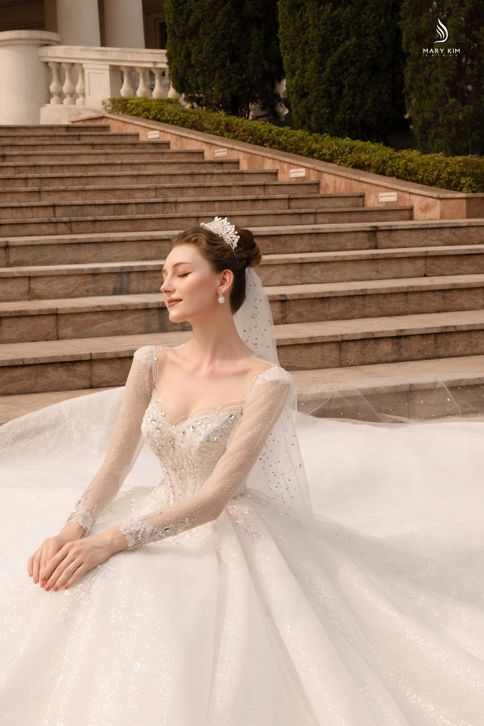 Đội ngũ nhà thiết kế và stylist chuyên nghiệp của Mary Kim luôn cập nhật xu hướng thời trang cưới quốc tế, kết hợp cùng gu thẩm mỹ tinh tế để tạo nên những mẫu váy cưới tay dài, cổ cao, hay váy satin dày – hoàn hảo cho mùa đông. Không chỉ là một bộ trang phục, mỗi chiếc váy còn là tác phẩm cá nhân hóa, kể câu chuyện tình yêu riêng của nàng.