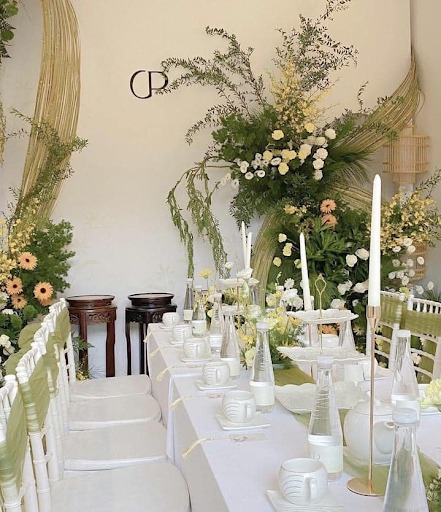 Tùy theo sở thích và phong cách của đám cưới, bạn có thể trang trí thêm hoa tươi, nến, hoặc các vật dụng trang trí nhẹ nhàng, mang đậm không khí cưới hỏi. Điều này không chỉ tạo ra không gian ấm cúng, mà còn giúp không gian trở nên lãng mạn và tươi mới.