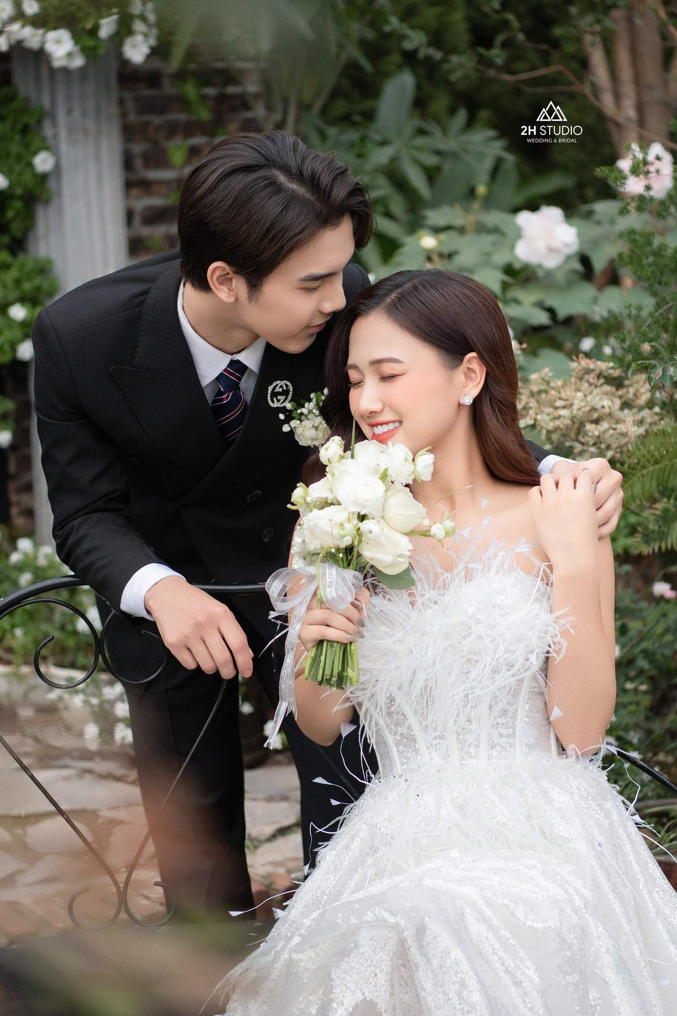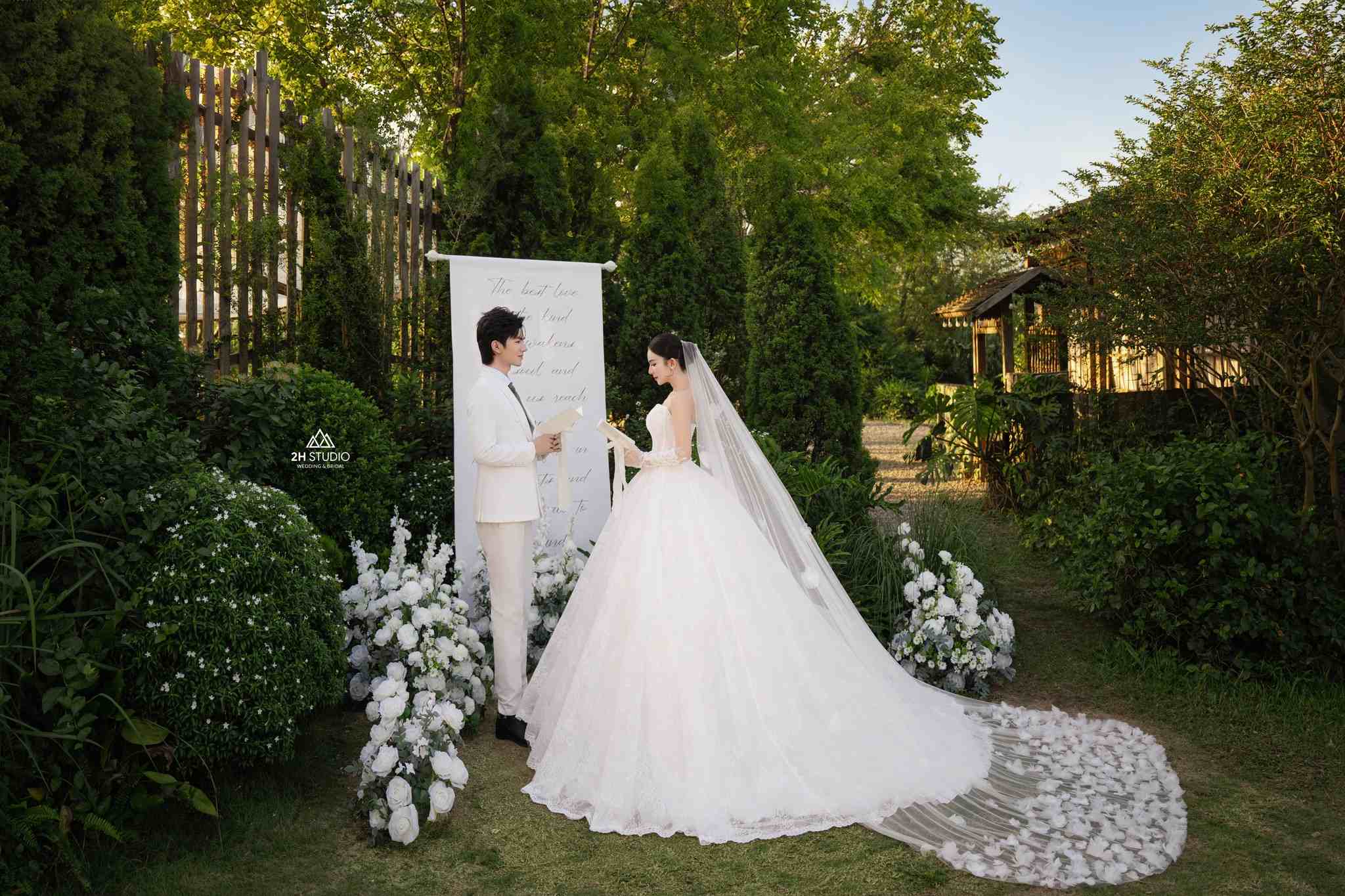 Góc chụp ảnh cưới với khu vườn lãng mạn