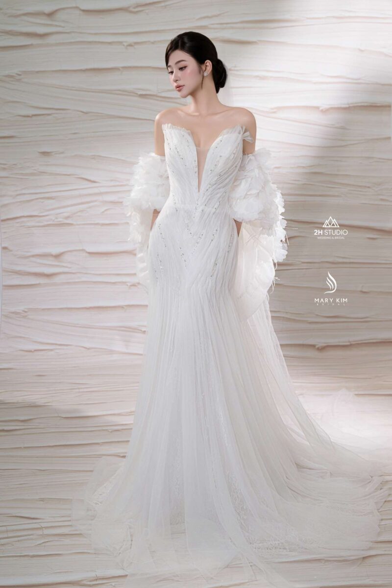 Váy cưới cổ yếm ấn tượng của thương hiệu Mary Kim tại 2H STUDIO