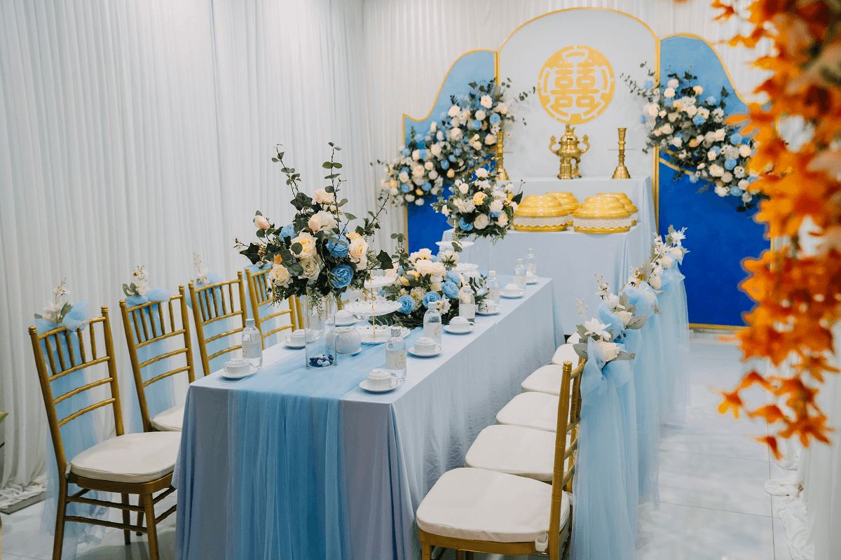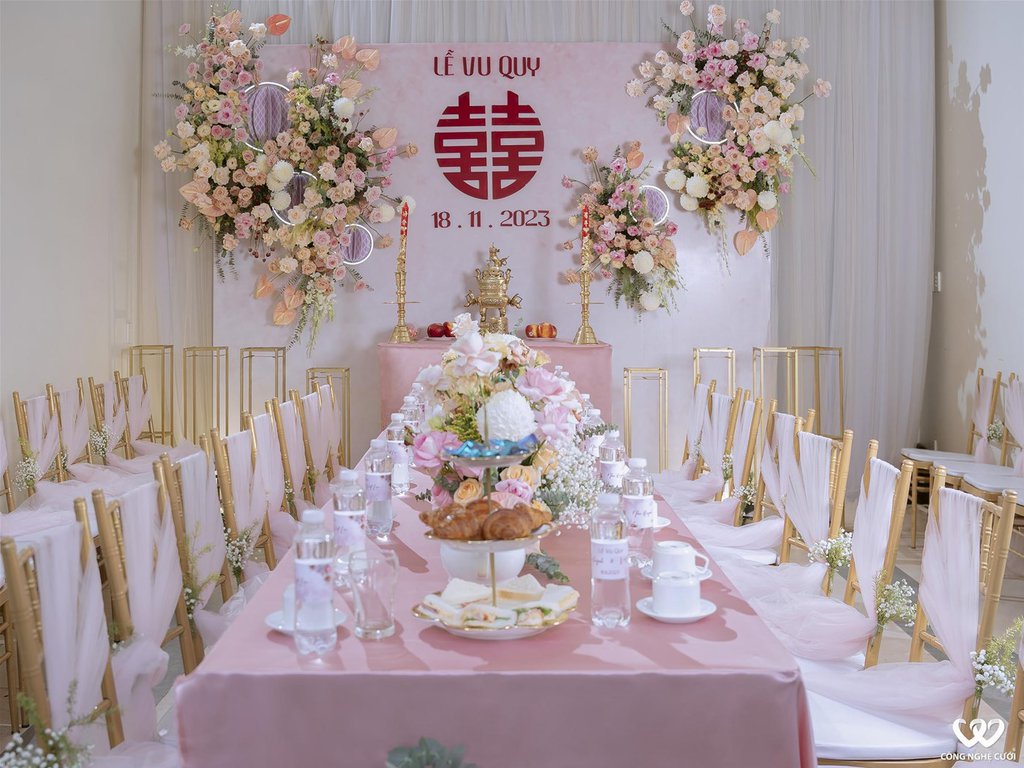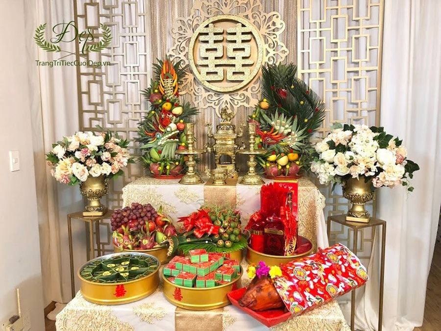 Trang trí bàn thờ gia tiên đám cưới là một phần không thể thiếu, góp phần mang lại không gian trang nghiêm và ấm cúng cho buổi lễ. Đây không chỉ là cách thể hiện lòng tôn kính với tổ tiên, mà còn là biểu tượng cho sự gắn kết giữa các thế hệ trong gia đình.