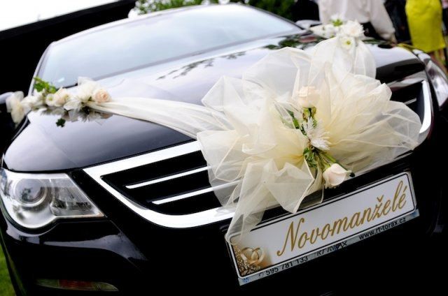 Mẫu trang trí xe cưới với phụ kiện ruy băng và lụa