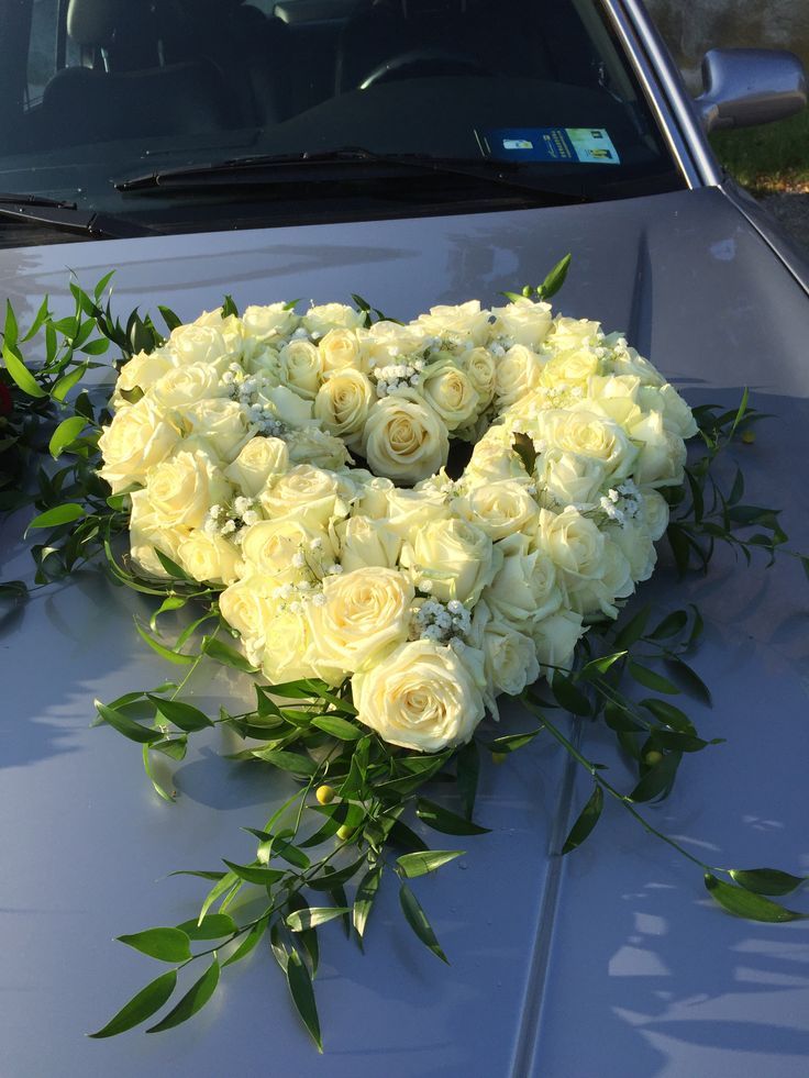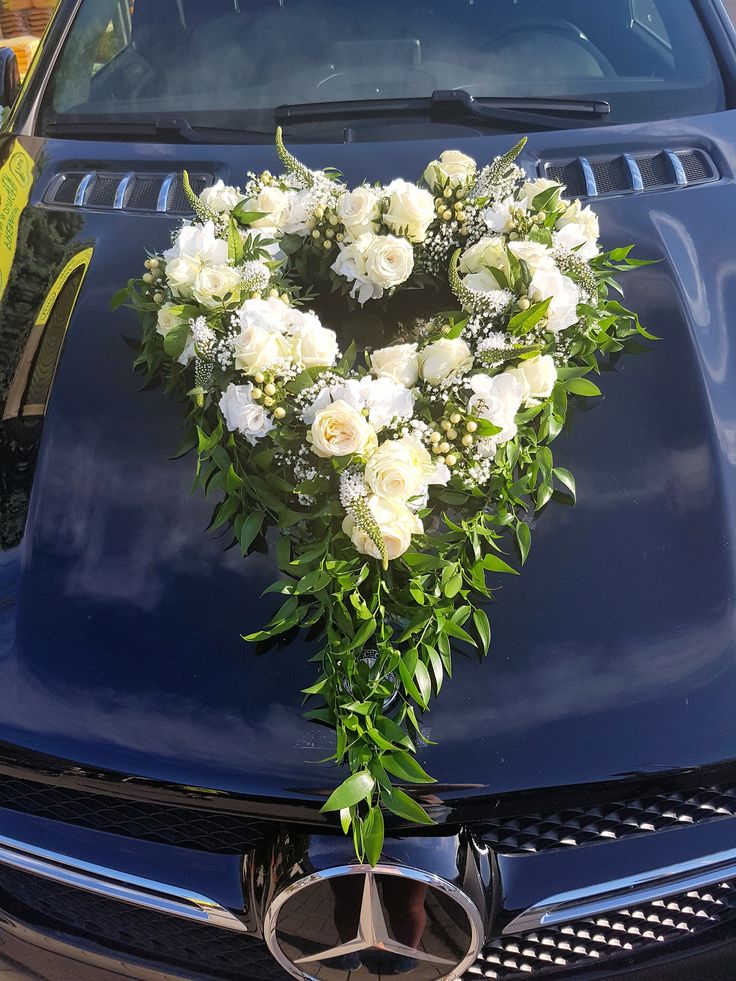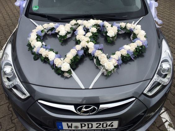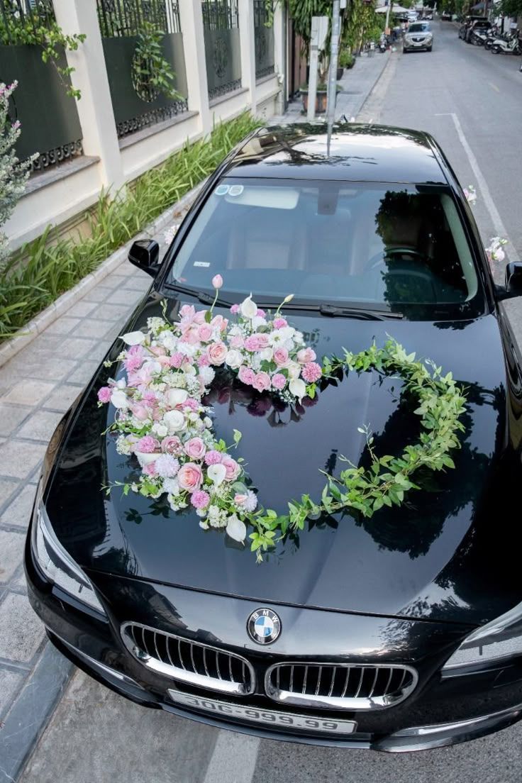 Trang trí xe hoa hình trái tim luôn nằm trong top lựa chọn phổ biến bởi ý nghĩa tượng trưng cho tình yêu bền chặt. Hoa được kết thành hình trái tim lớn đặt ở nắp capo, kết hợp thêm nơ hoặc hoa nhỏ hai bên gương xe tạo nên vẻ lãng mạn, thu hút mọi ánh nhìn. Màu sắc thường dùng là đỏ, trắng hoặc hồng – biểu trưng cho tình yêu nồng nàn và hạnh phúc trọn vẹn.