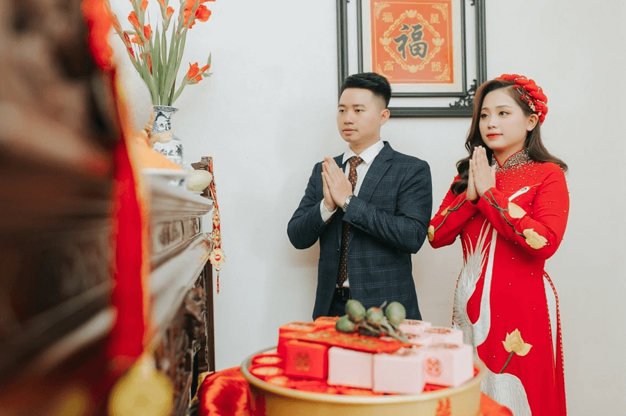 Đây là cách thể hiện lòng hiếu kính và cầu mong sự chúc phúc từ người đã khuất cho cuộc sống hôn nhân của đôi trẻ.