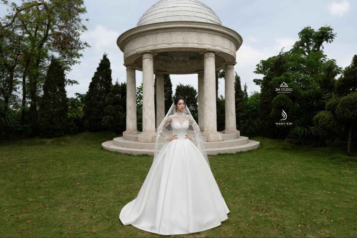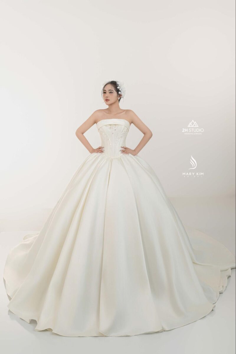 Mỗi chiếc váy tại 2H STUDIO đều được thiết kế và may đo tỉ mỉ, từ khâu chọn chất liệu, phom dáng đến từng chi tiết đính kết thủ công. Sự kết hợp giữa kỹ thuật may chuẩn xác và cảm hứng nghệ thuật giúp mỗi thiết kế không chỉ là trang phục cưới mà còn là một tác phẩm thể hiện phong cách và cá tính của cô dâu.